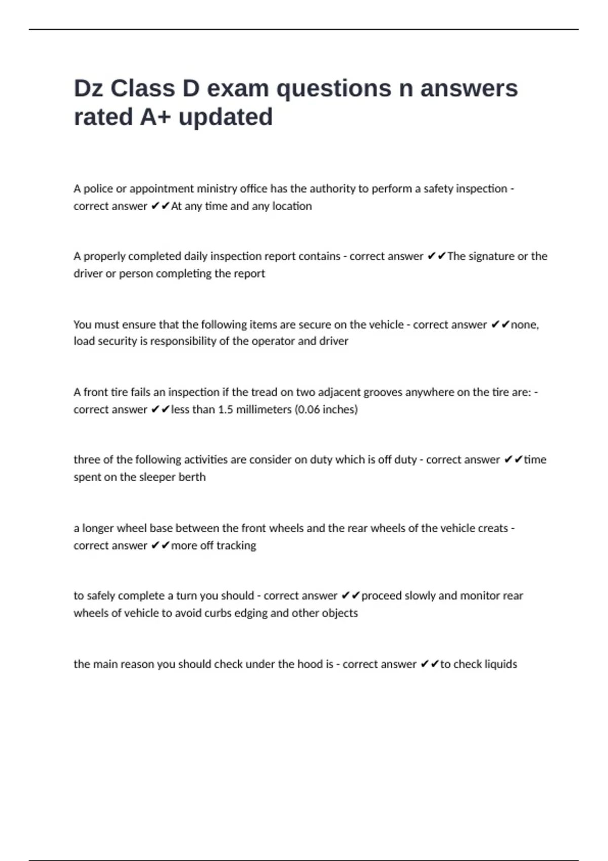 You must ensure that the following items are secure on the vehicle - correct answer ✔✔none,