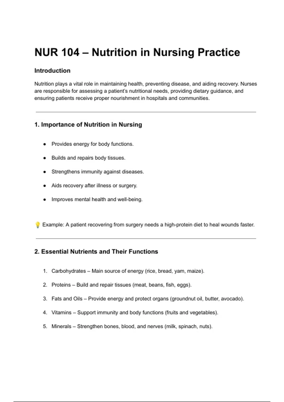 1. Importance of Nutrition in Nursing