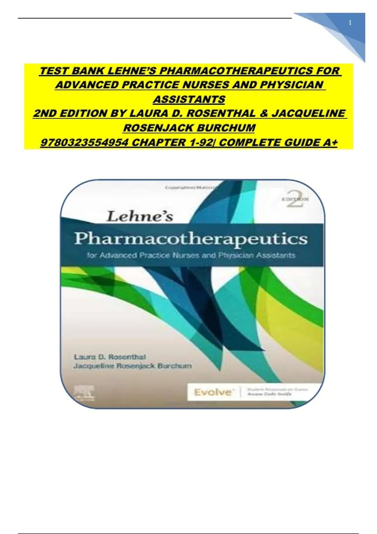TEST BANK LEHNE’S PHARMACOTHERAPEUTICS FOR
