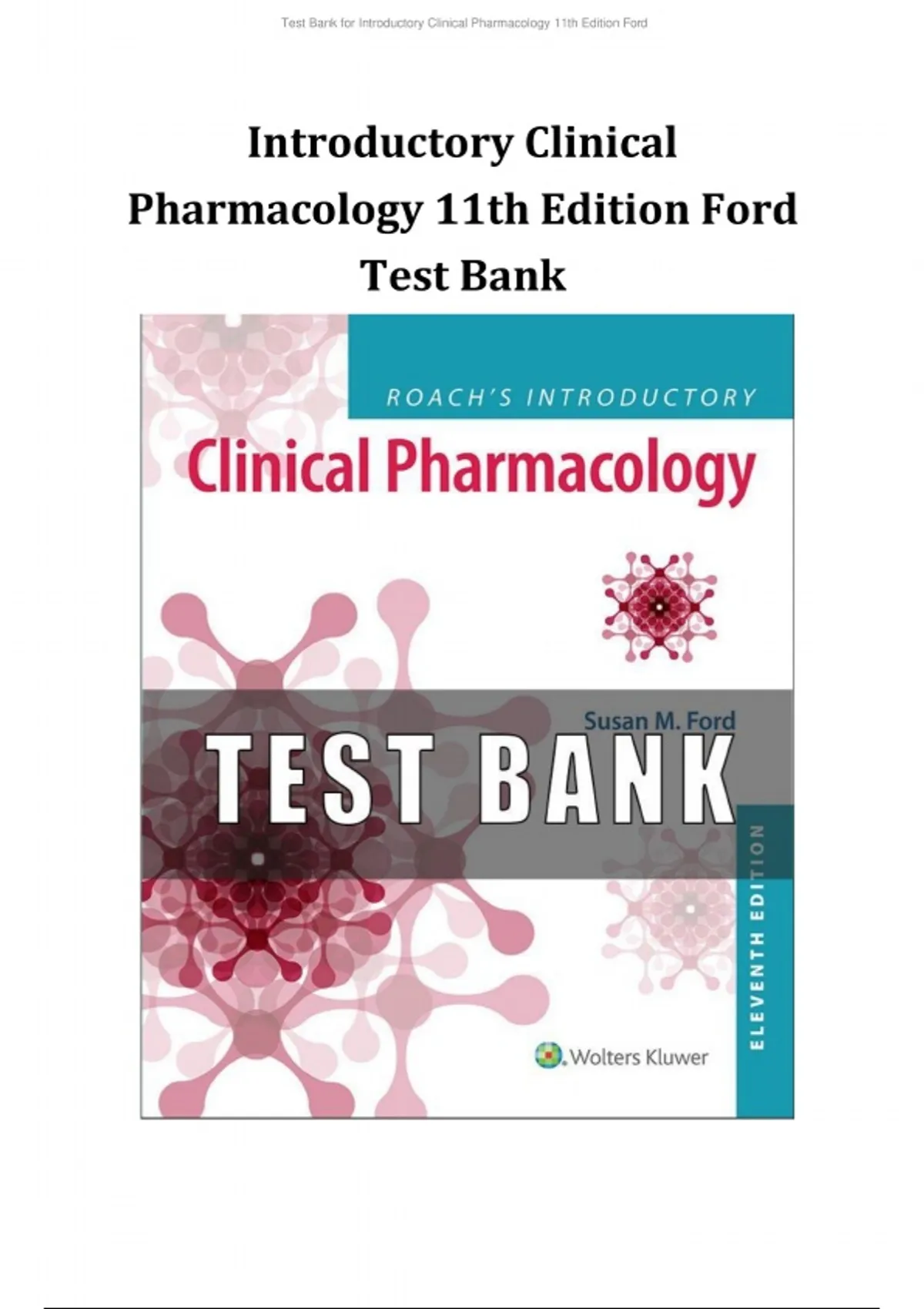 Test Bank for Introductory Clinical Pharmacology 11th Edition by Susan M. Ford