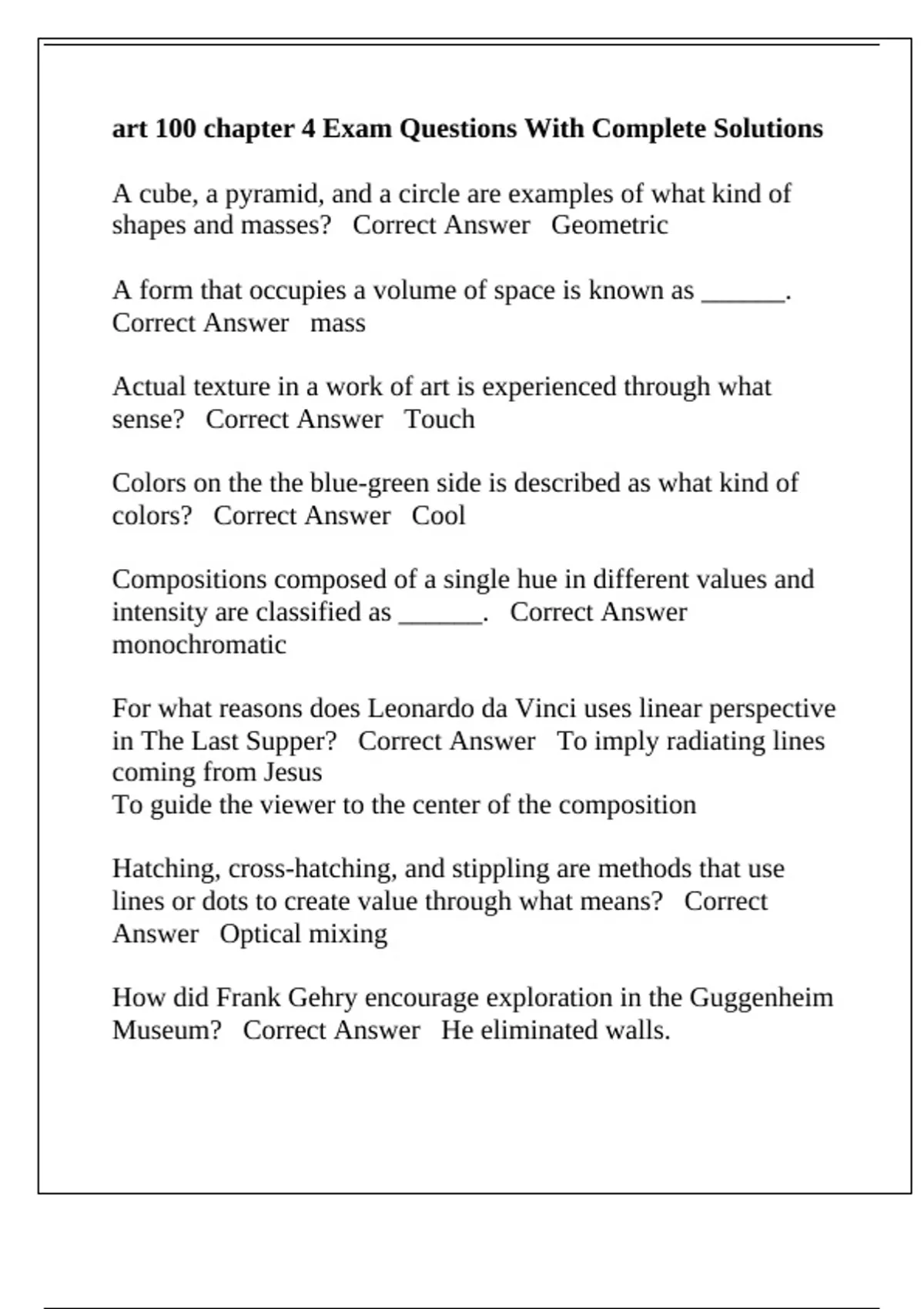 works of art? Correct Answer To create visual mass