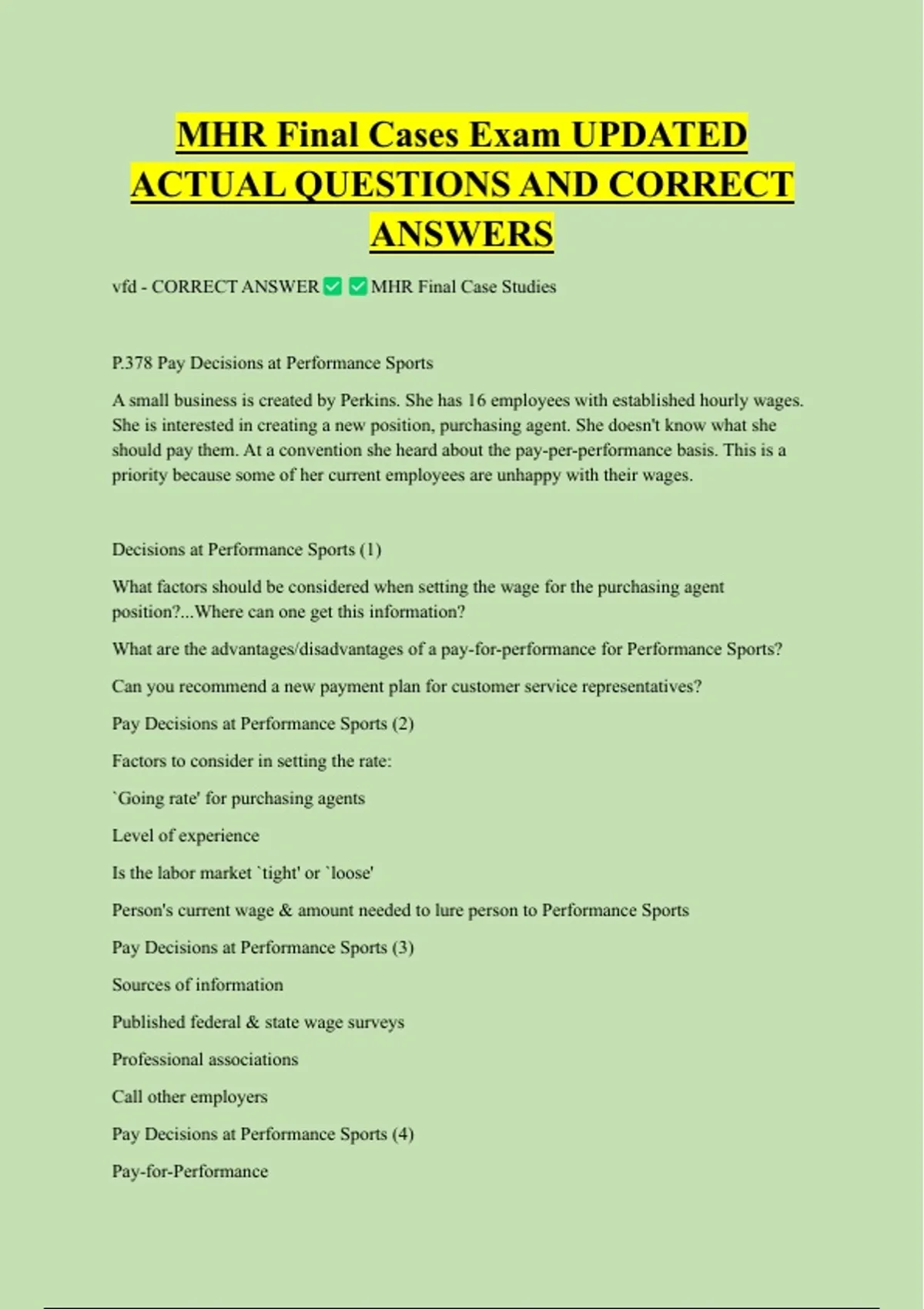 vfd - CORRECT ANSWER MHR Final Case Studies