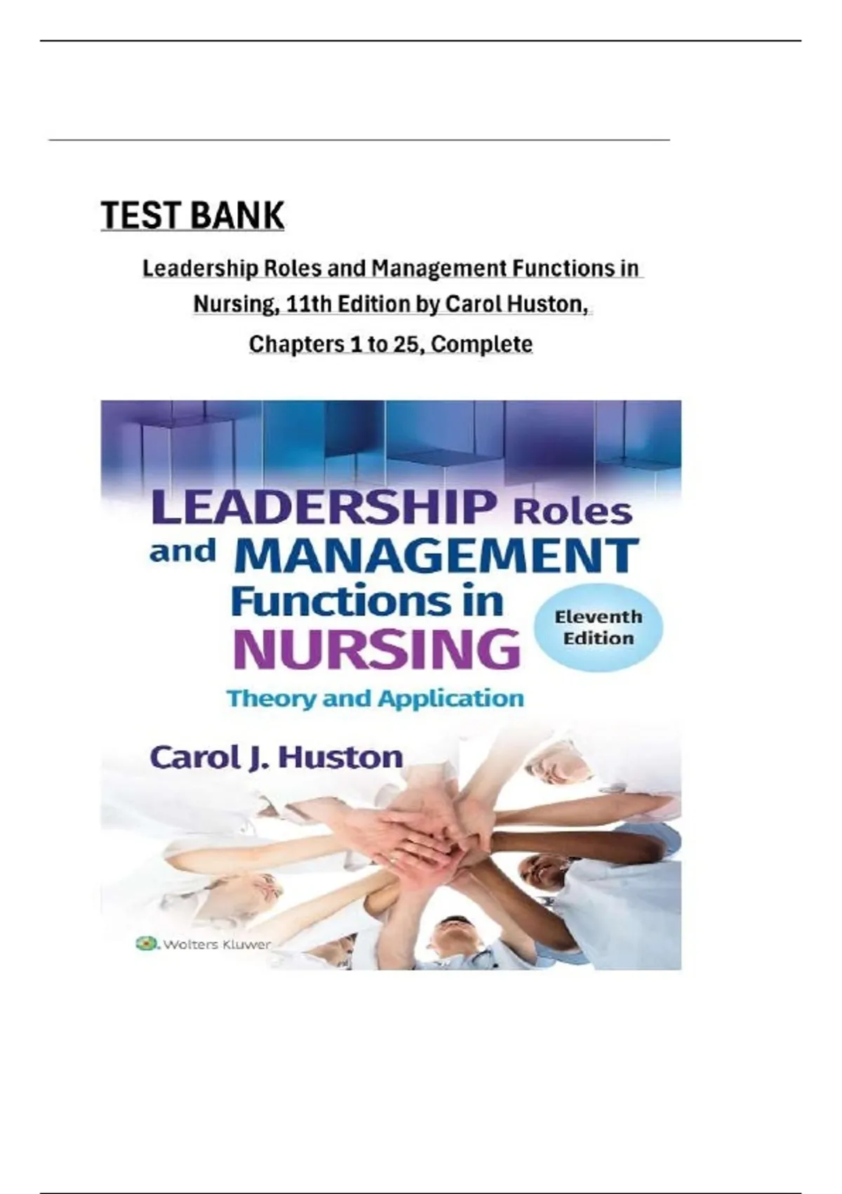 Test Bank For Leadership Roles and Management Functions in Nursing Theory and Application 11th Edition By Carol Jorgensen Huston | 9781975193065 | 2024/2025 | Chapter 1-25 | All Chapters with Answers and Rationals