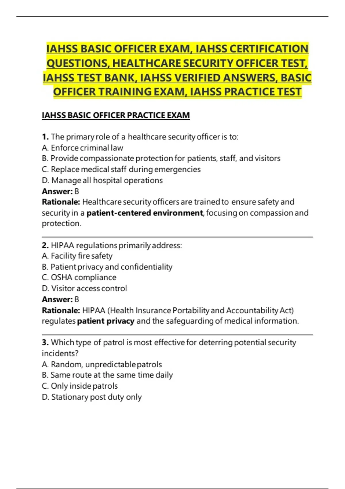 OFFICER TRAINING EXAM, IAHSS PRACTICE TEST