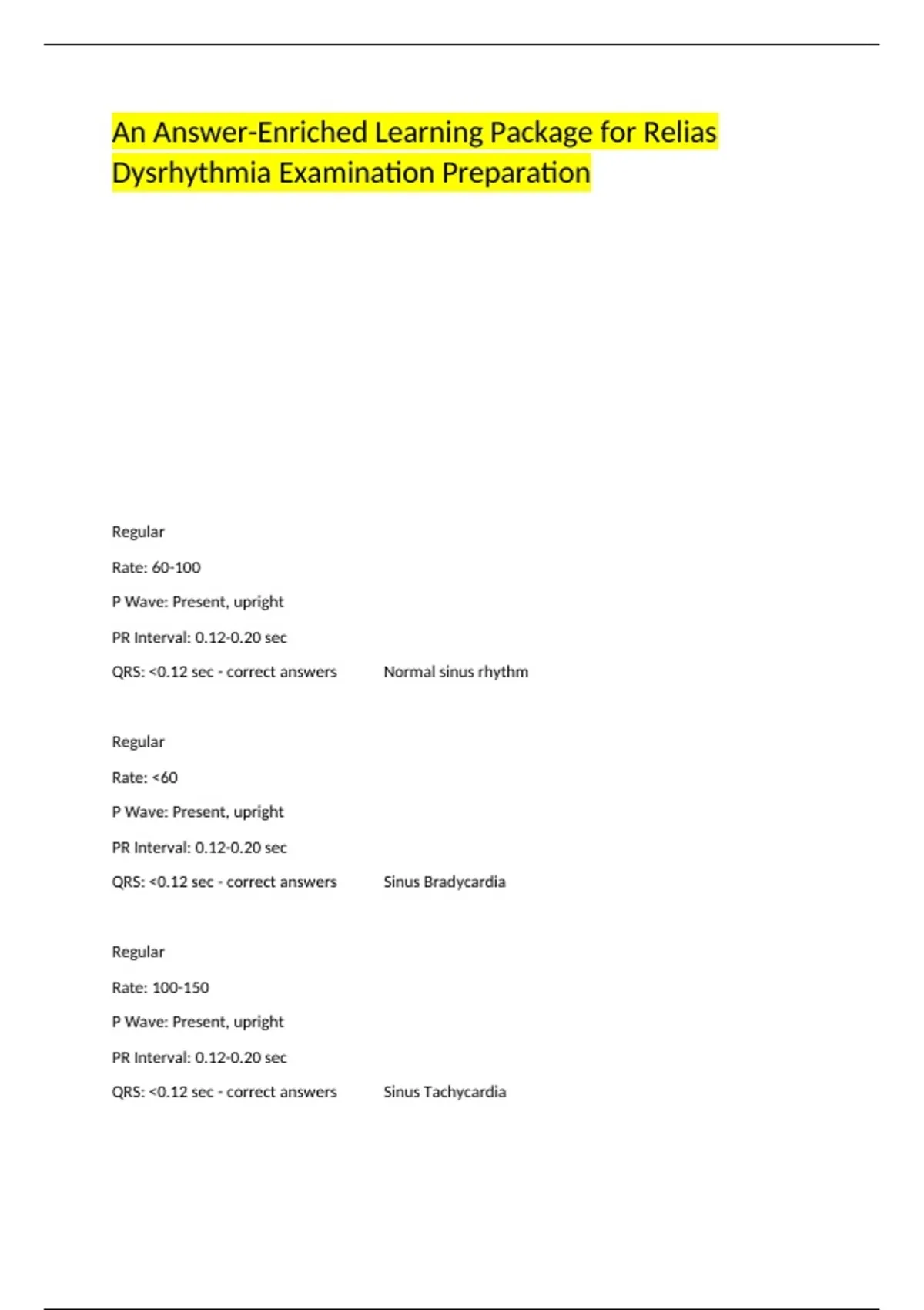QRS: <0.12 sec - correct answers ✔️✔️Normal sinus rhythm