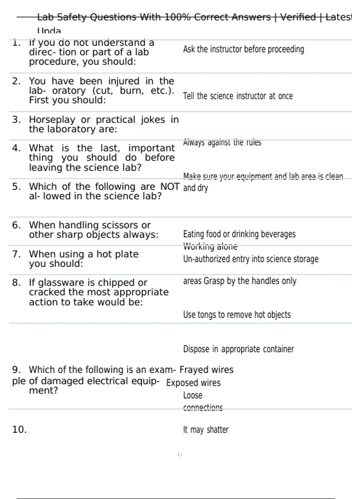 Lab Safety Questions With 100% Correct Answers | Verified | Latest