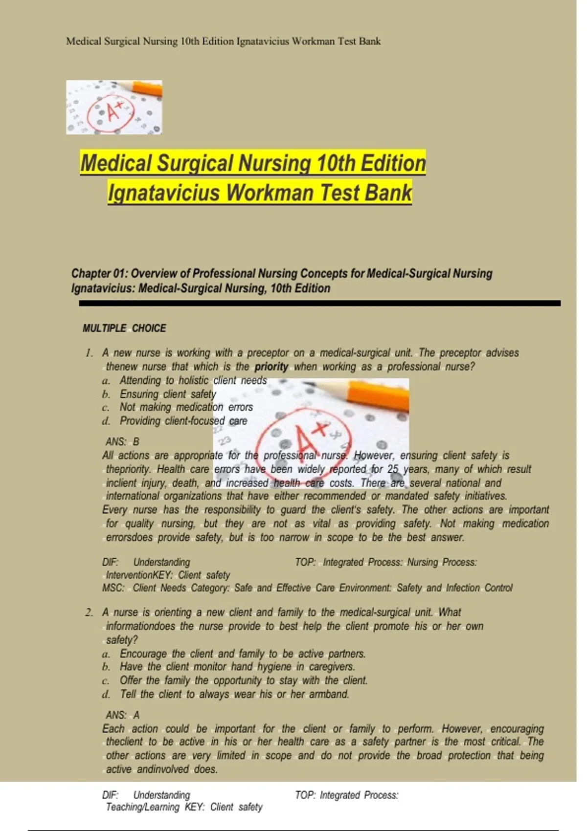 , Medical mSurgical mNursing m10th mEdition mIgnatavicius mWorkman mTest mBank