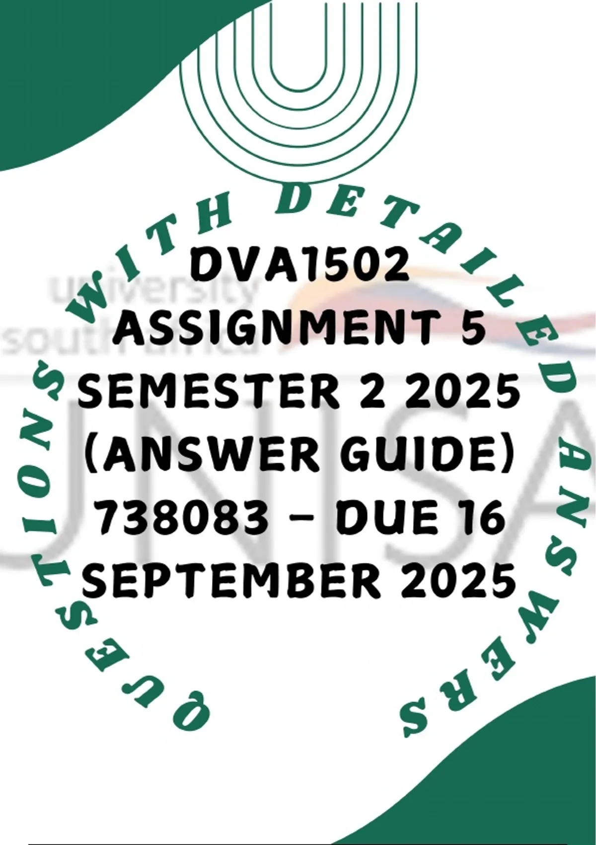 DVA1502 ASSIGNMENT 5 SEMESTER 2 2025 (Answer Guide) 738083 – Due 16 September 2025