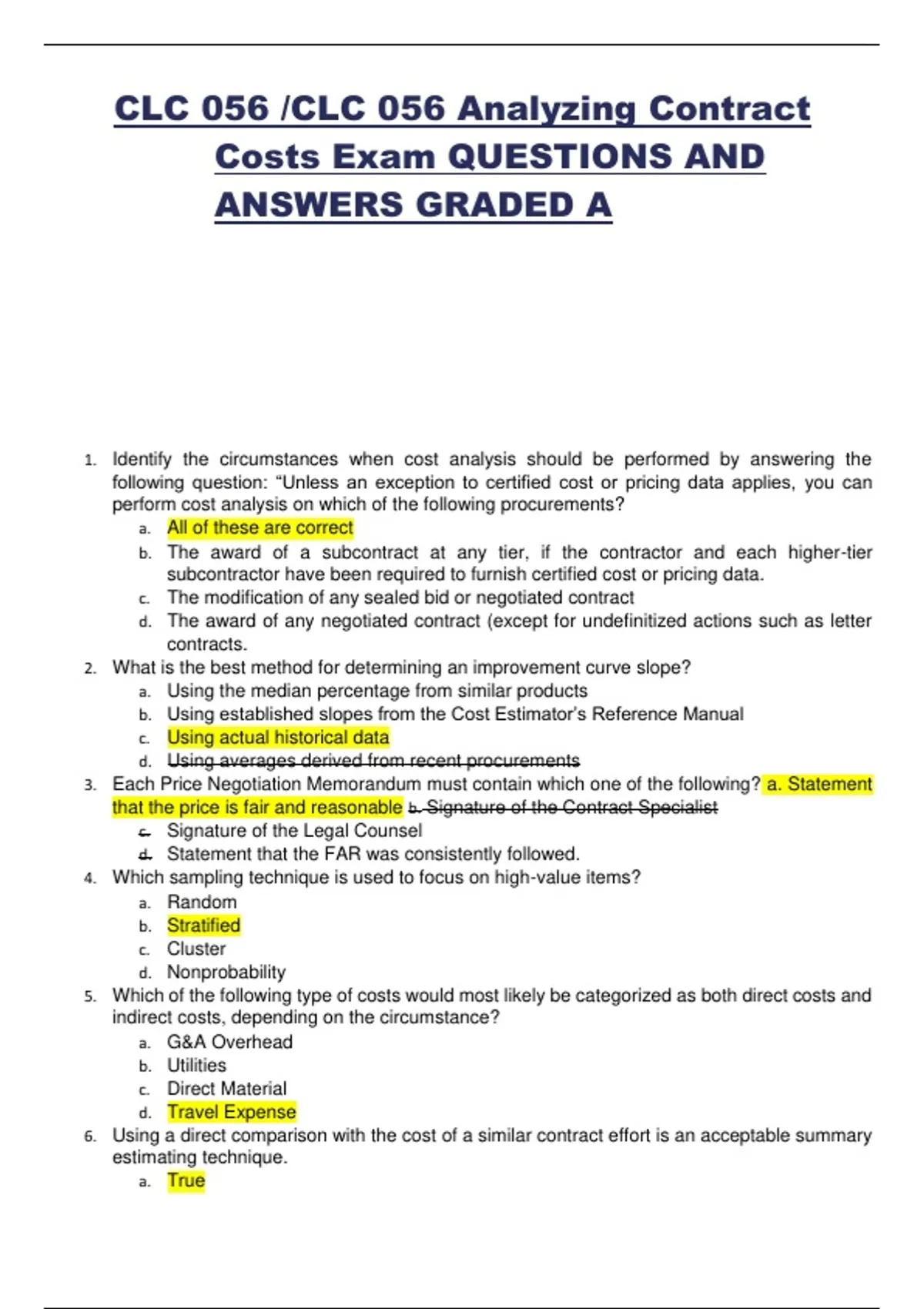Costs Exam QUESTIONS AND