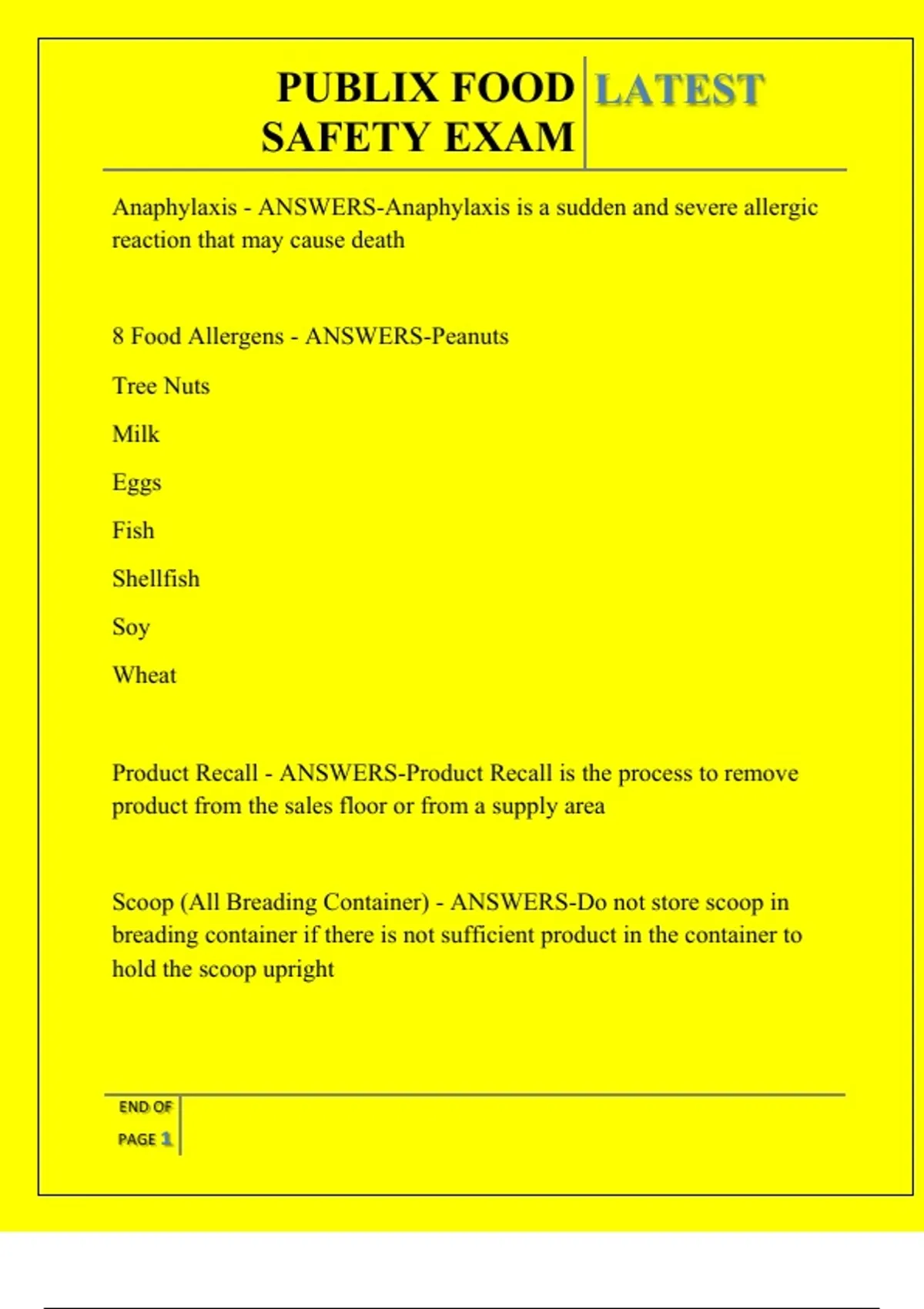 PUBLIX FOOD SAFETY EXAM QUESTIONS AND ANSWERS 2025