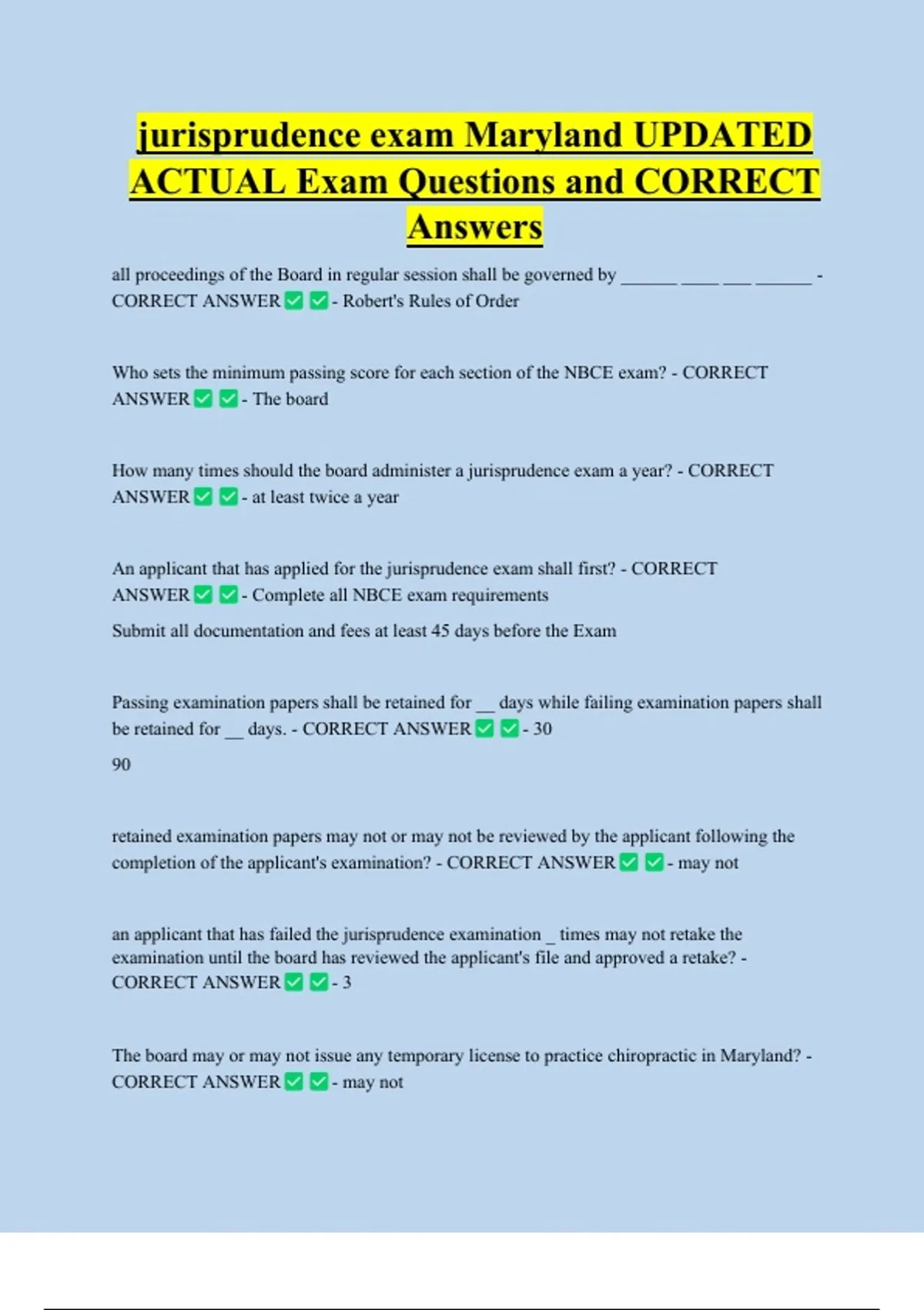 jurisprudence exam Maryland UPDATED ACTUAL Exam Questions and CORRECT Answers