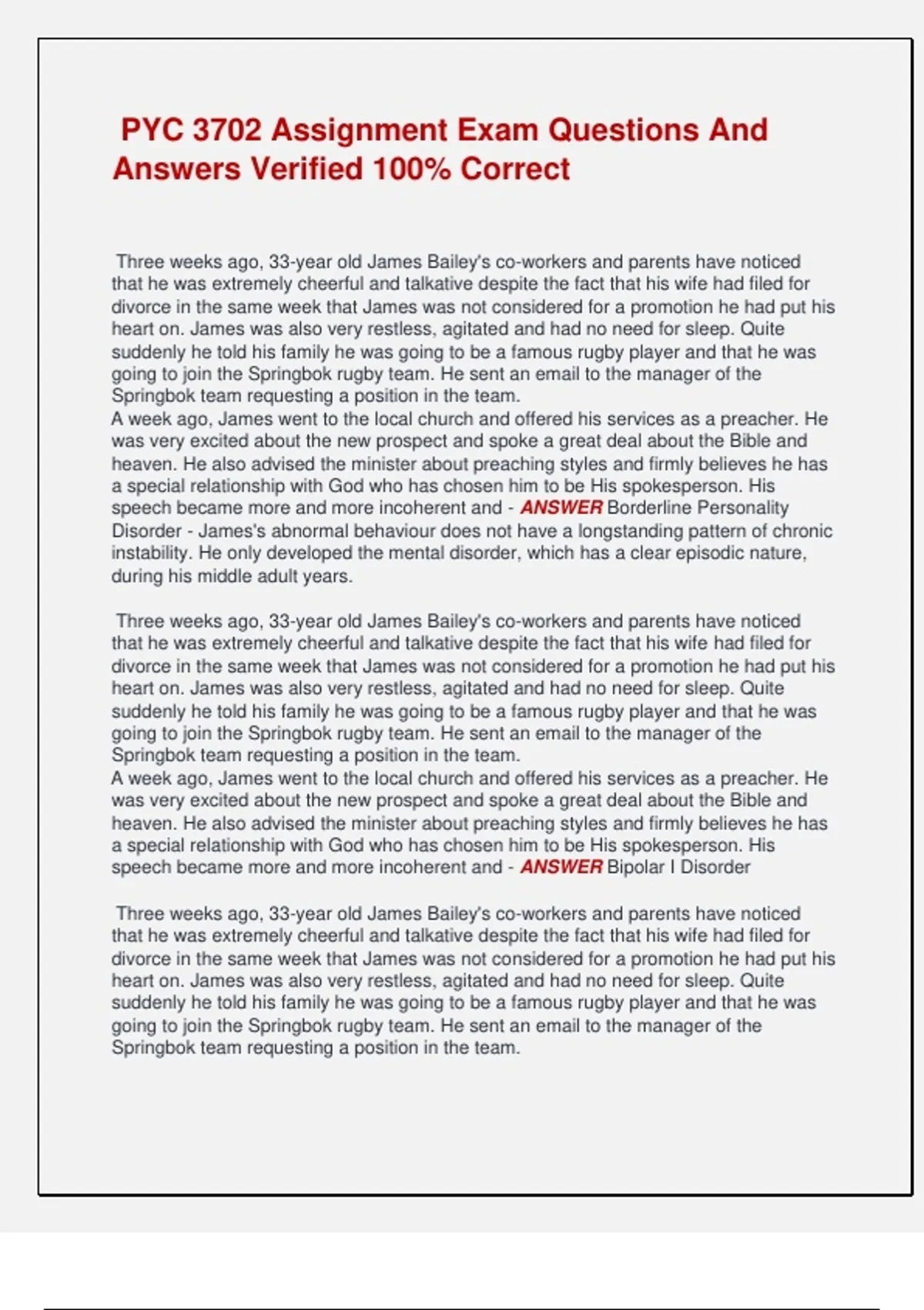 speech became more and more incoherent and - ANSWER Bipolar I Disorder