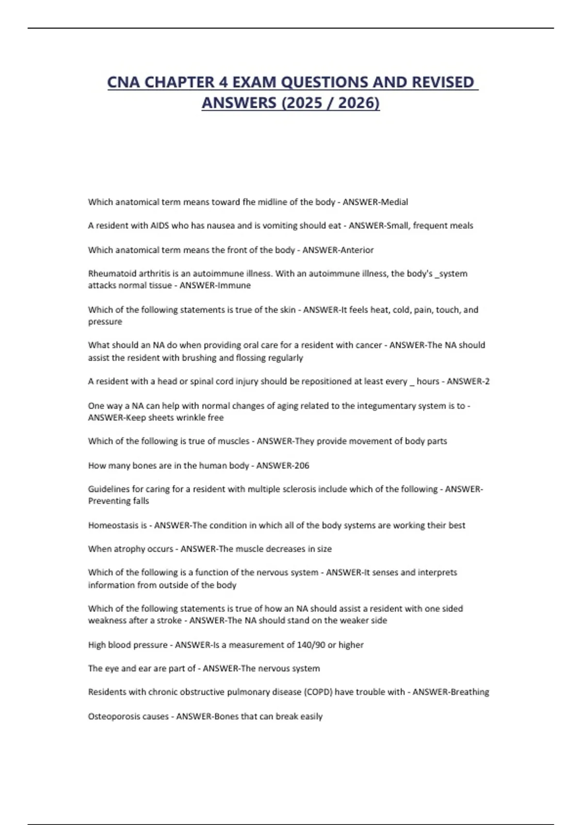 CNA CHAPTER 4 EXAM QUESTIONS AND REVISED