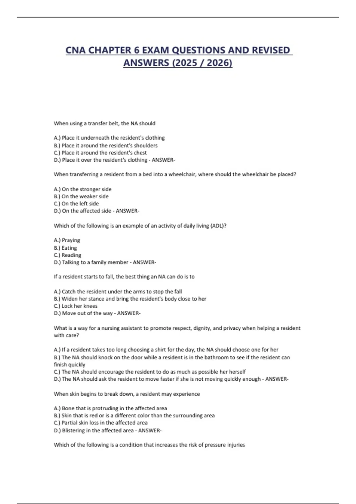 CNA CHAPTER 6 EXAM QUESTIONS AND REVISED