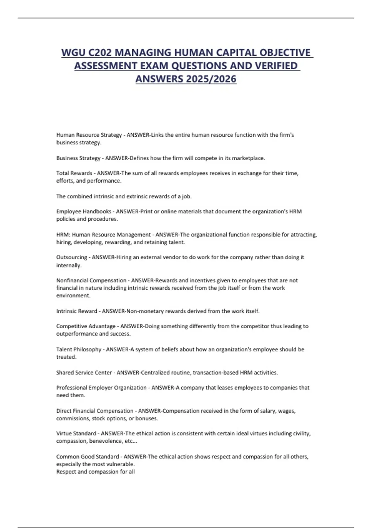 WGU C202 MANAGING HUMAN CAPITAL OBJECTIVE