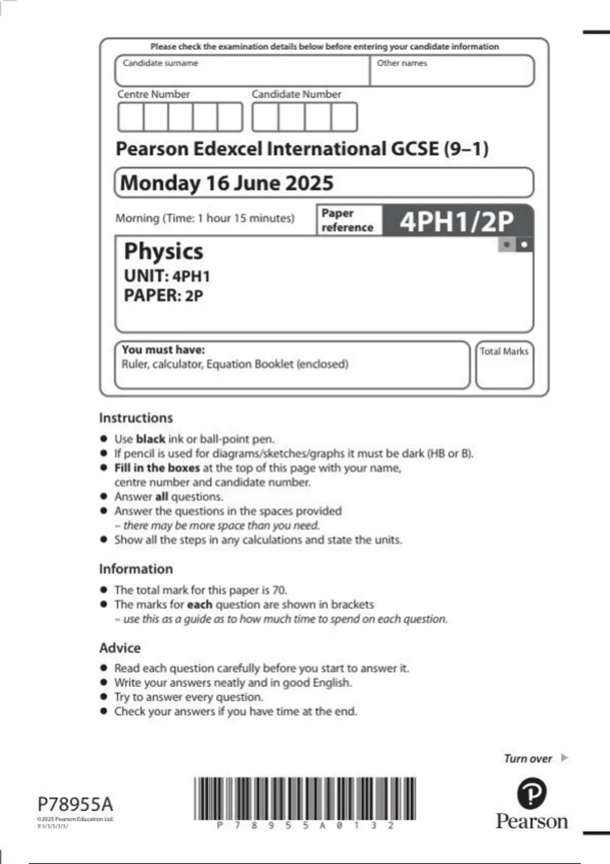 pearson edexcel international gcse june 4ph1 2p physics linear paper 2p 2025pearson