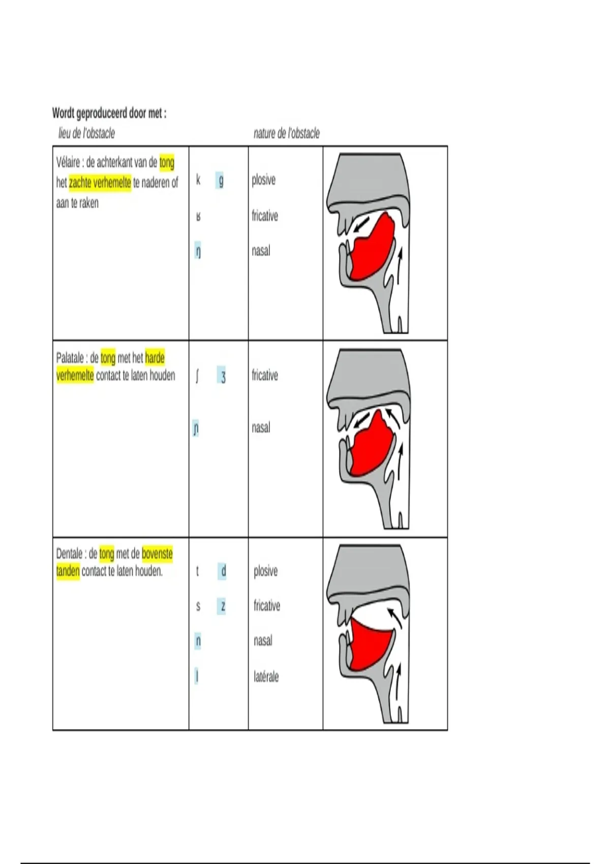 Dit document bevat een schema met de spraakklanken die je bij het vak linguistique moet kennen met voorbeelden en afbeeldingen.