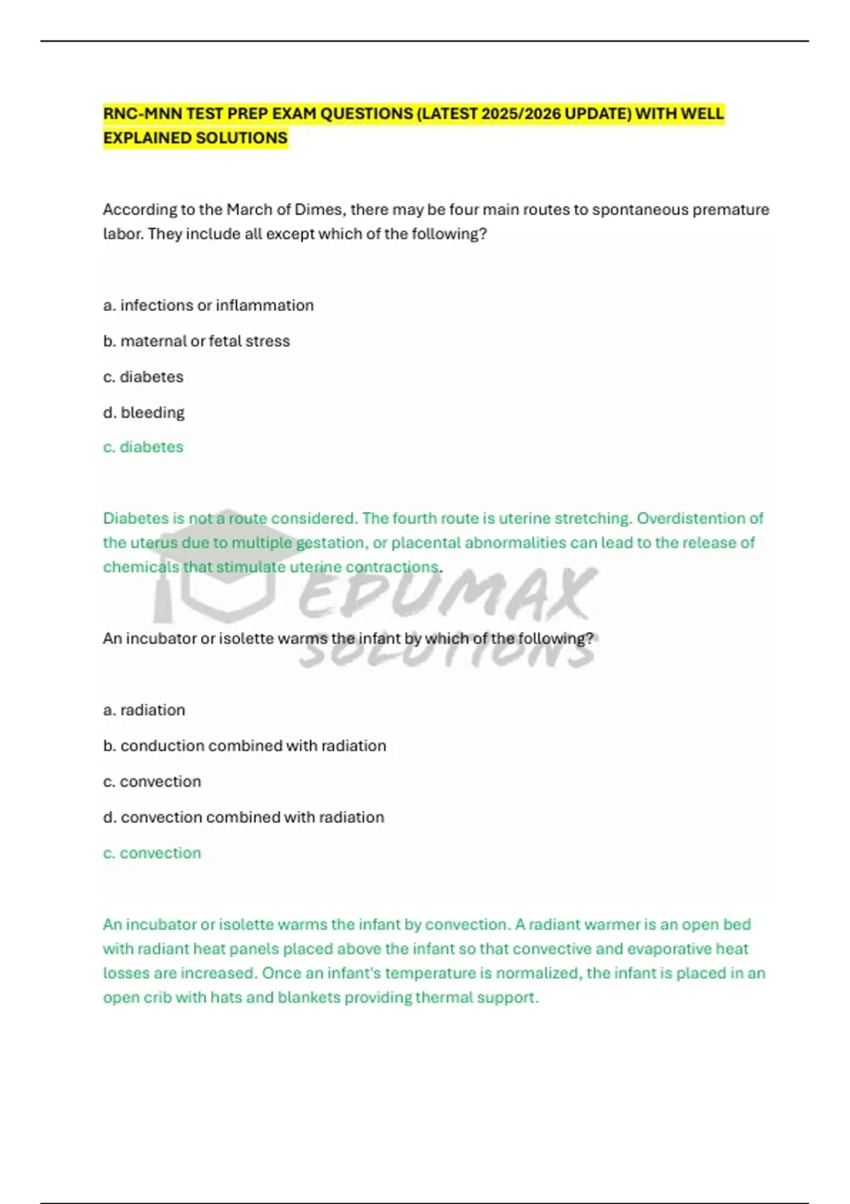 RNC-MNN TEST PREP EXAM QUESTIONS (LATEST 2025/2026 UPDATE) WITH WELL