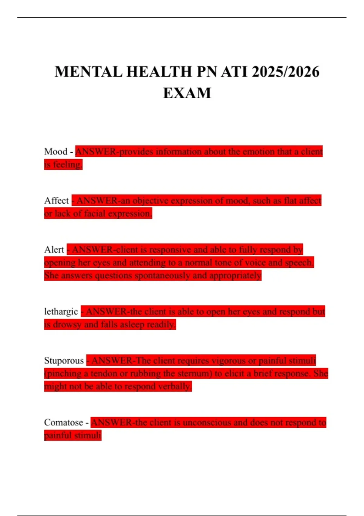 MENTAL HEALTH PN ATI 2025/2026