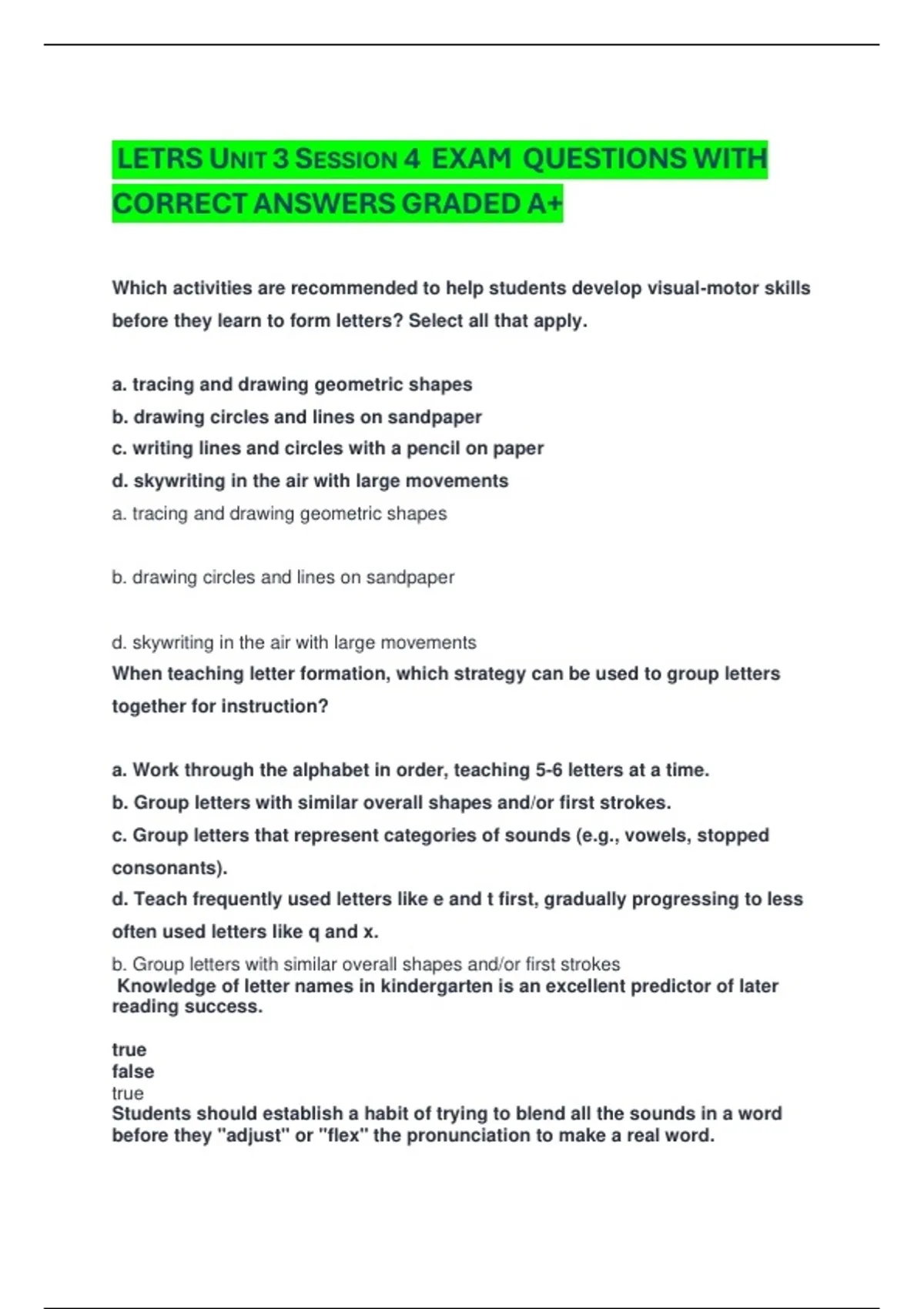 LETRS UNIT 3 SESSION 4 EXAM QUESTIONS WITH