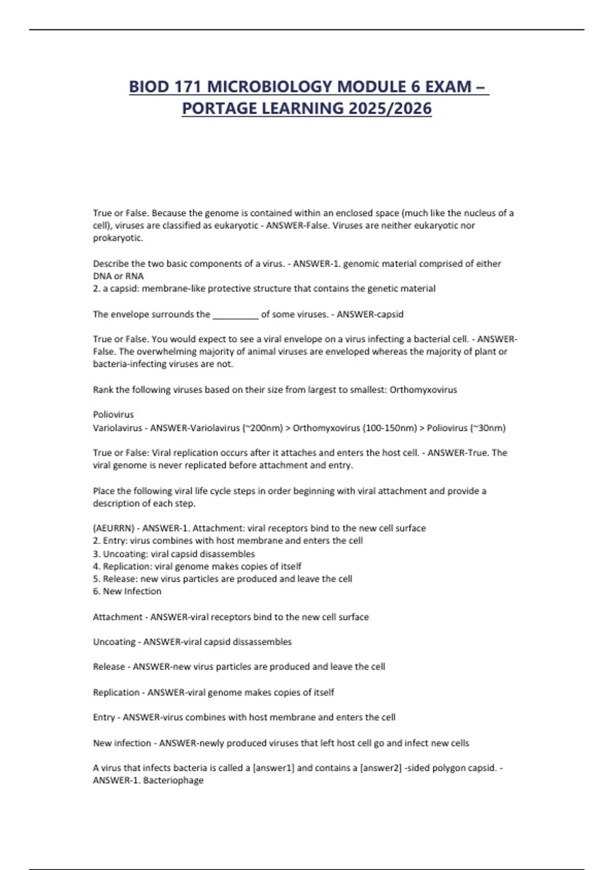 BIOD 171 MICROBIOLOGY MODULE 6 EXAM –