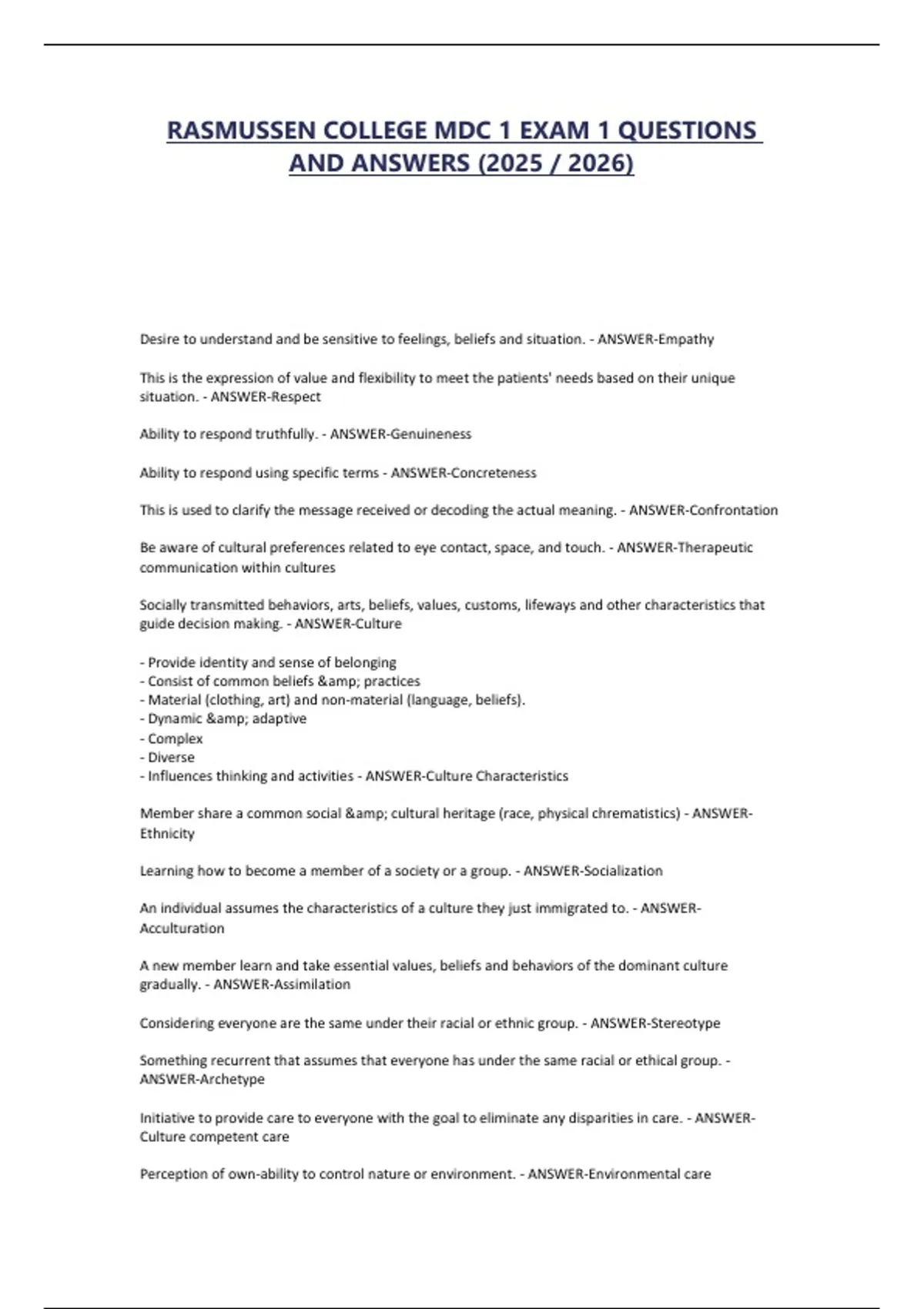 RASMUSSEN COLLAGE MDC1 EXAM QUESTIONS AND ANSWERS