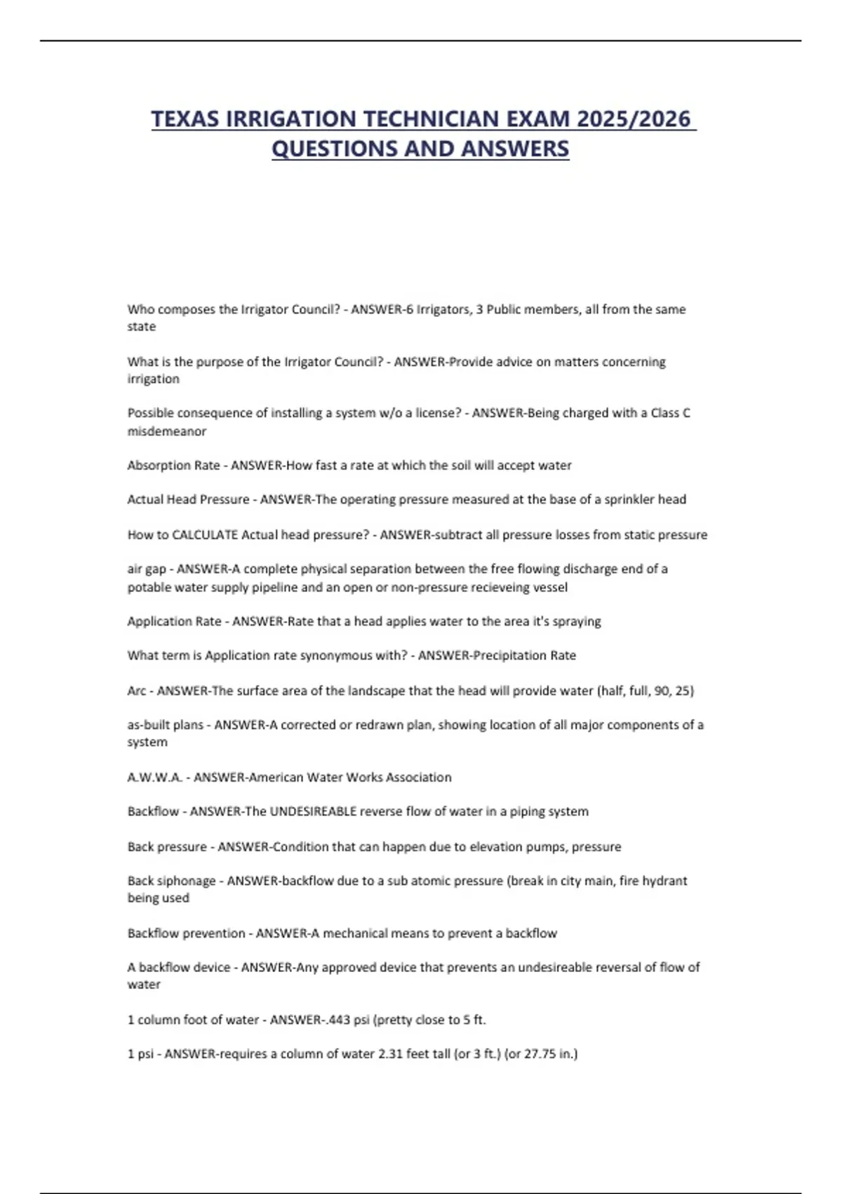 TEXAS IRRIGATION TECHNICIAN EXAM 2025/2026