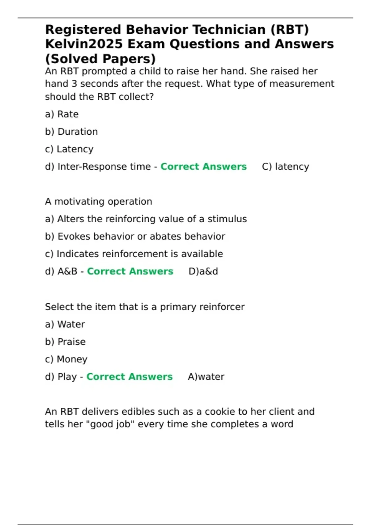d) Discriminative Stimulus - Correct Answers ✅C) pairing