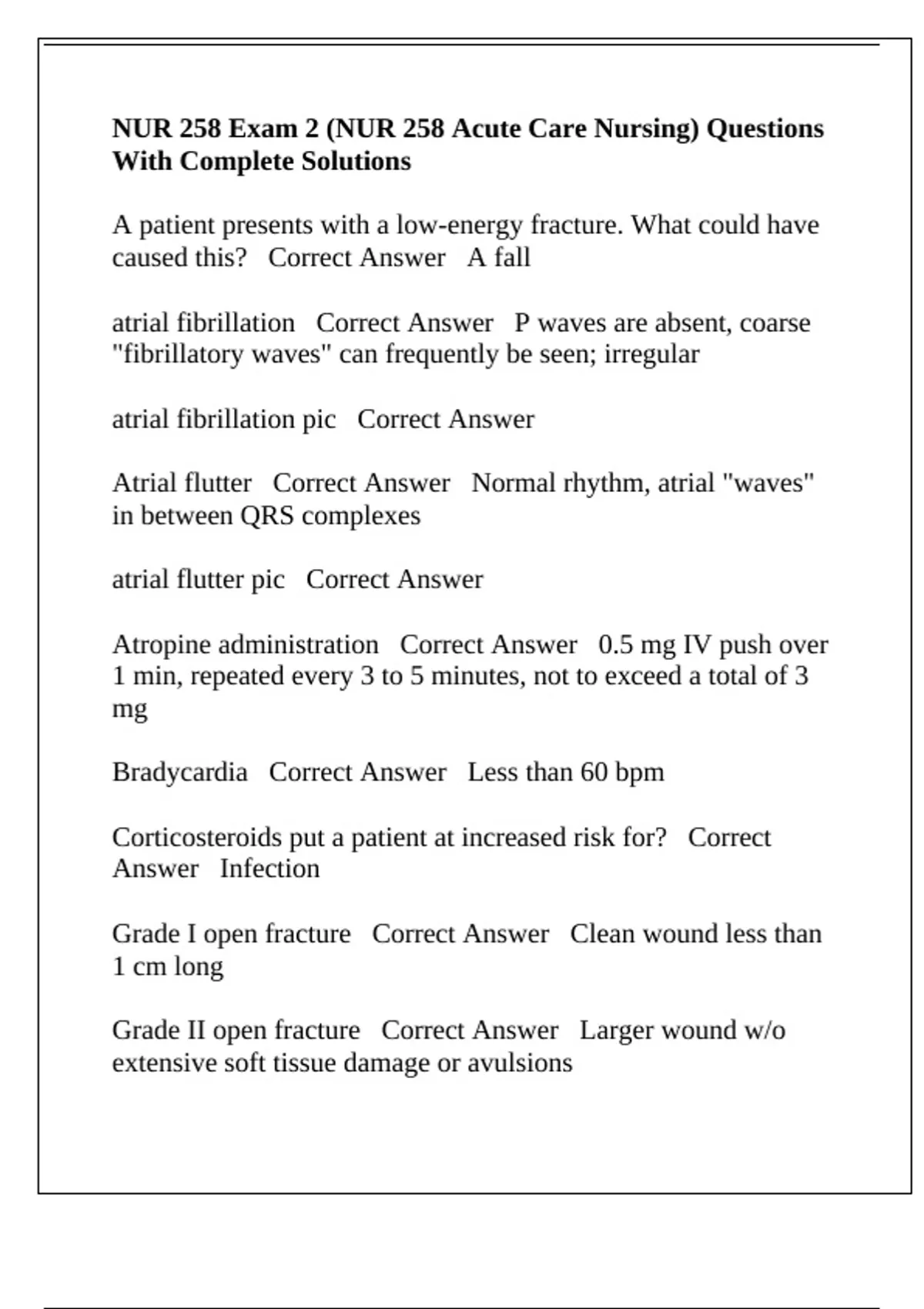 Atrial flutter Correct Answer Normal rhythm, atrial "waves"