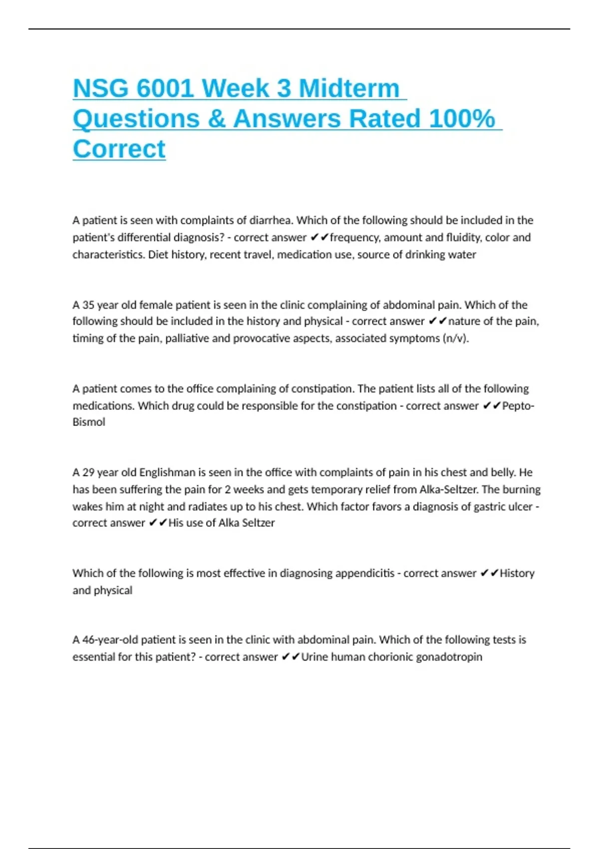 NSG 6001 Week 3 Midterm Questions & Answers Rated 100% Correct