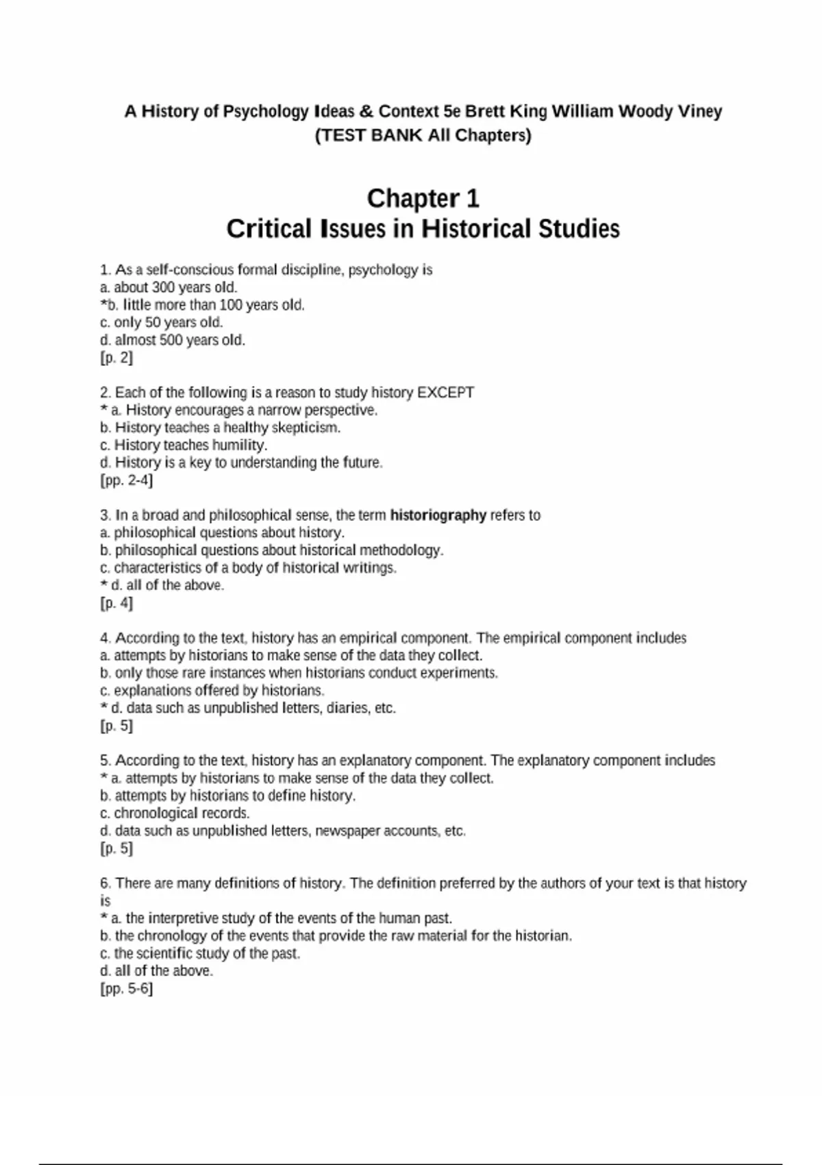 A History of Psychology Ideas & Context 5e Brett King William Woody Viney TEST BANK