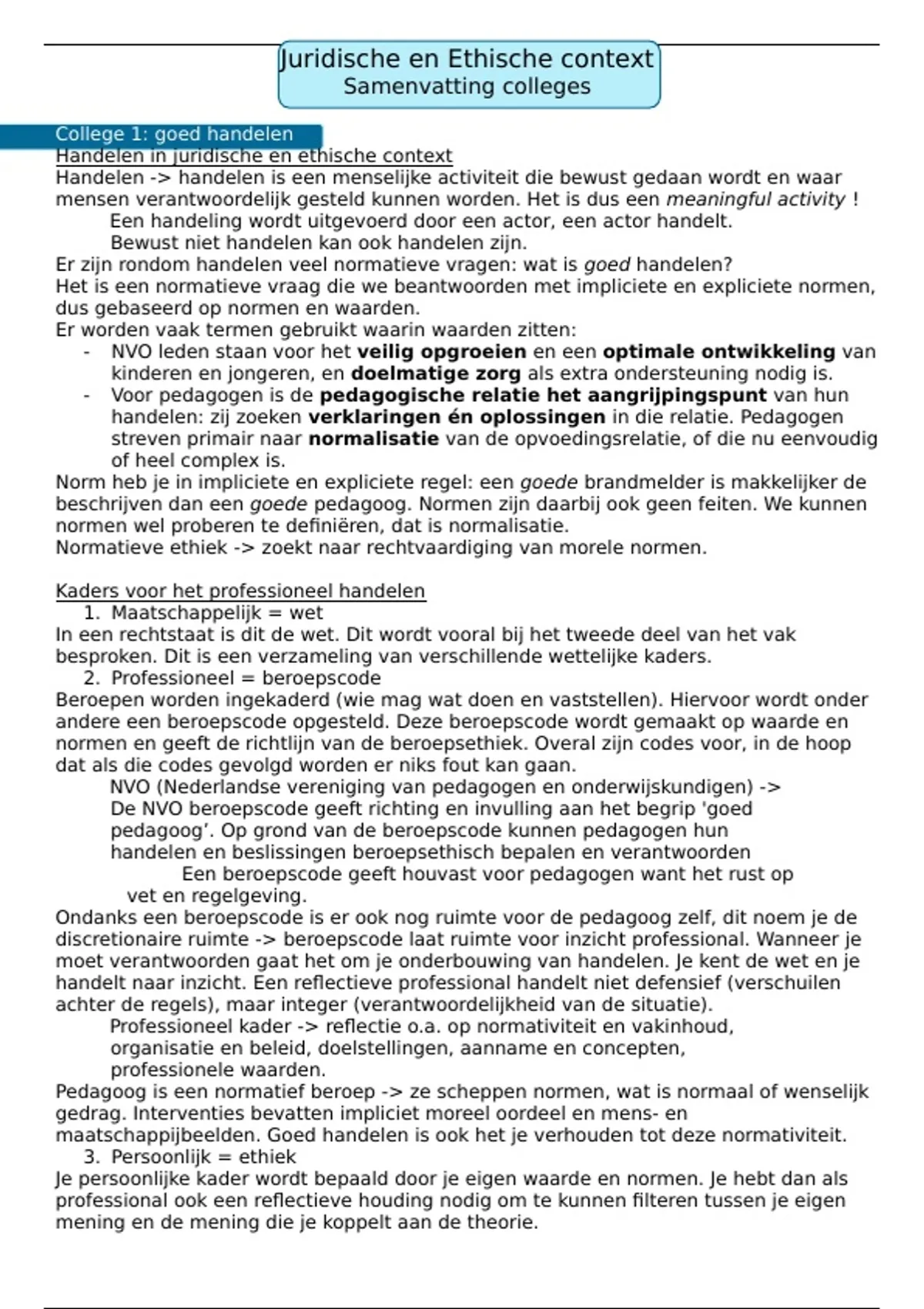 Samenvatting - Juridische en ethische context (SOW-PWB3350)
