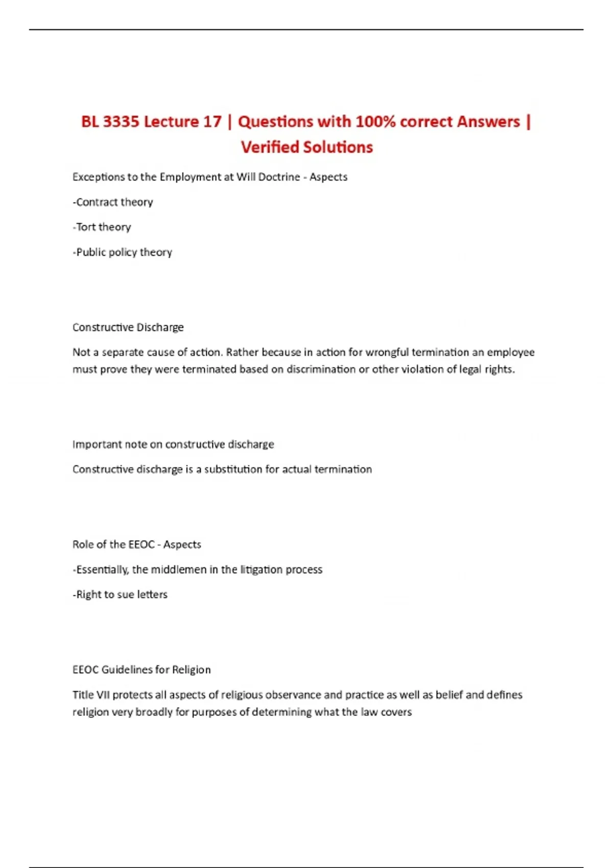 BL 3335 Lecture 17 | Questions with 100% correct Answers | Verified Solutions