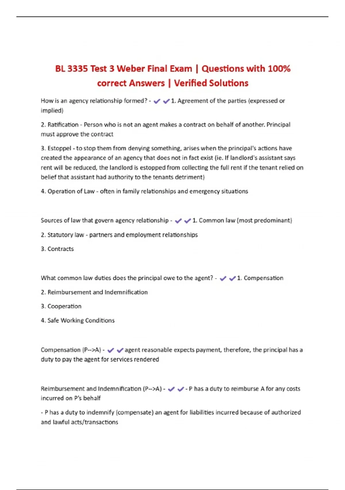 BL 3335 Test 3 Weber Final Exam | Questions with 100% correct Answers | Verified Solutions