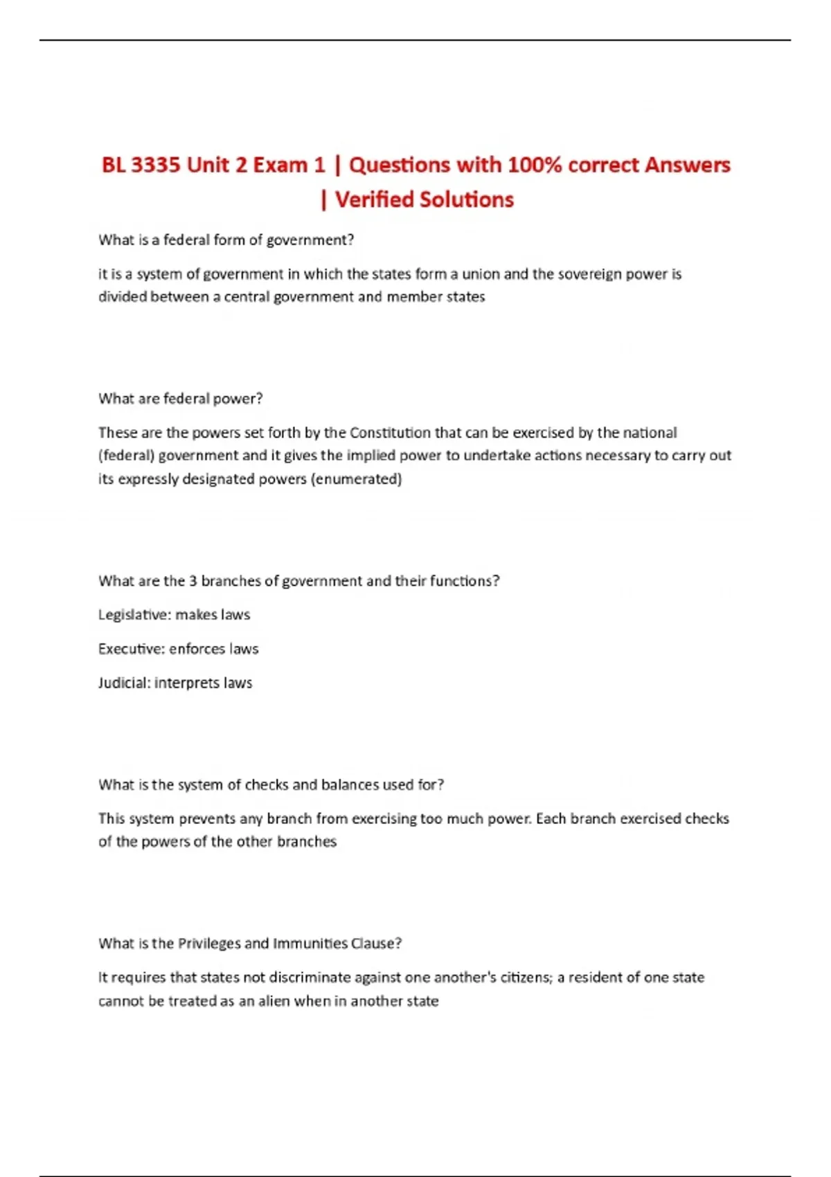 BL 3335 Unit 2 Exam 1 | Questions with 100% correct Answers | Verified Solutions