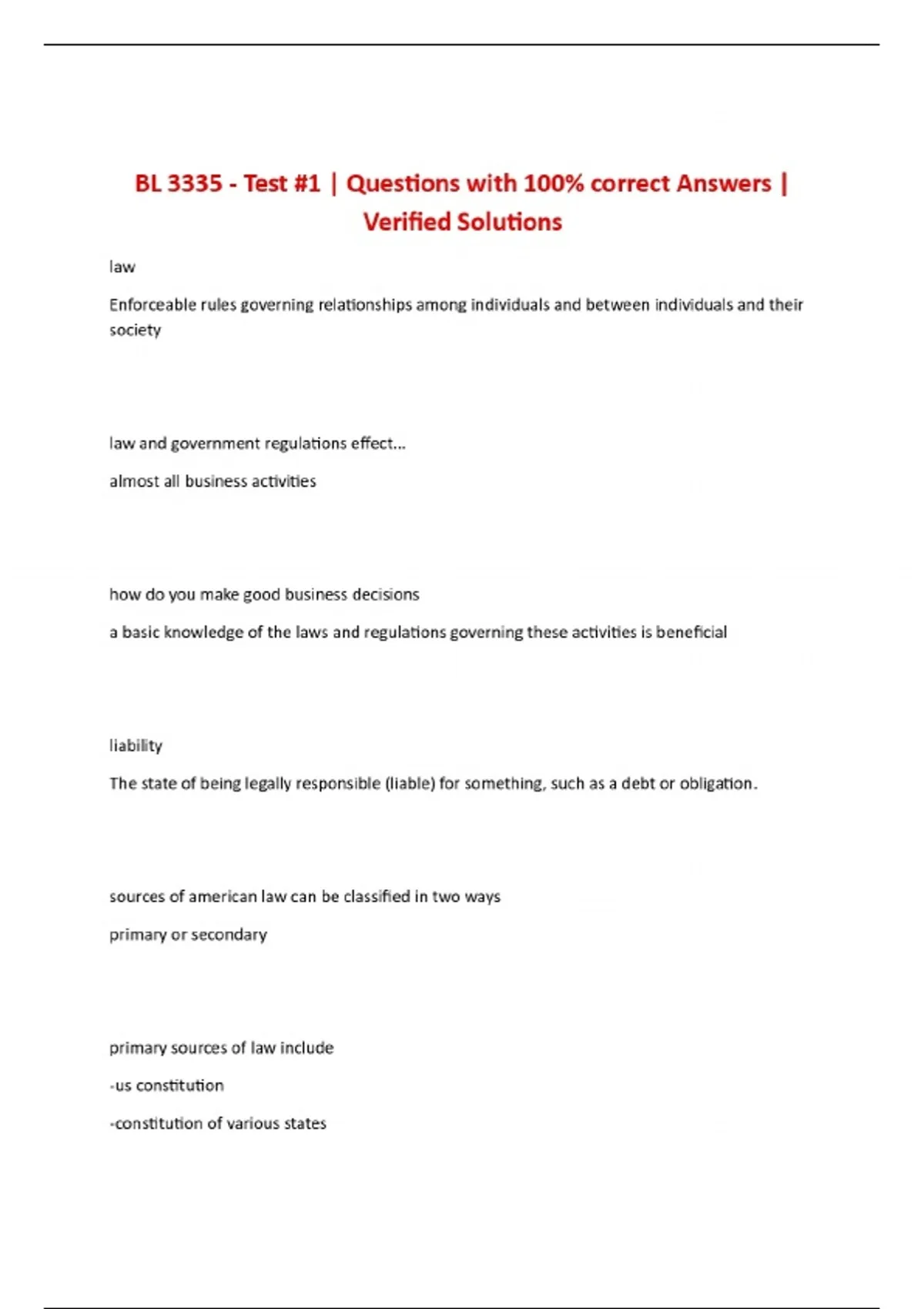 BL 3335 - Test #1 | Questions with 100% correct Answers | Verified Solutions