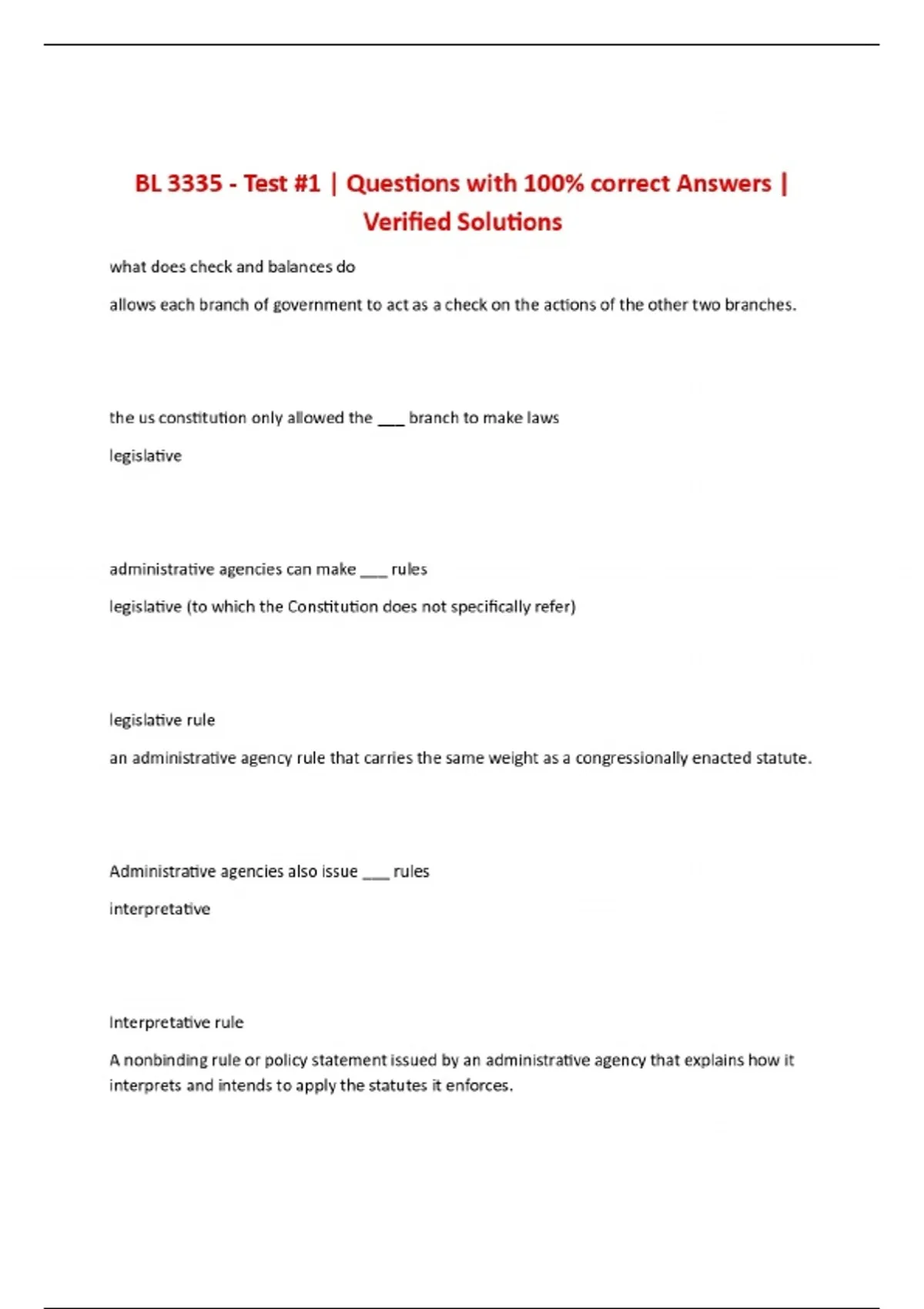 BL 3335 - Test #1 | Questions with 100% correct Answers | Verified Solutions