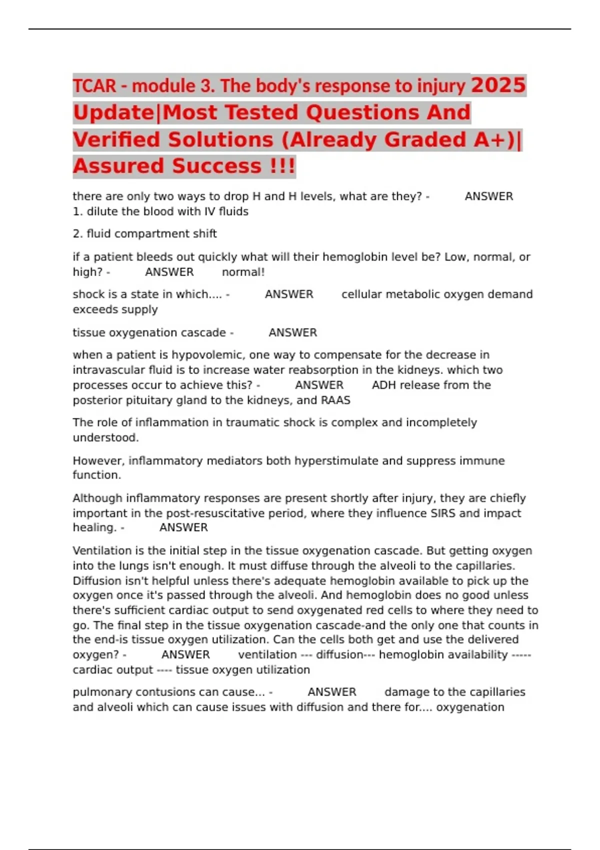 TCAR - module 3. The body's response to injury 2025