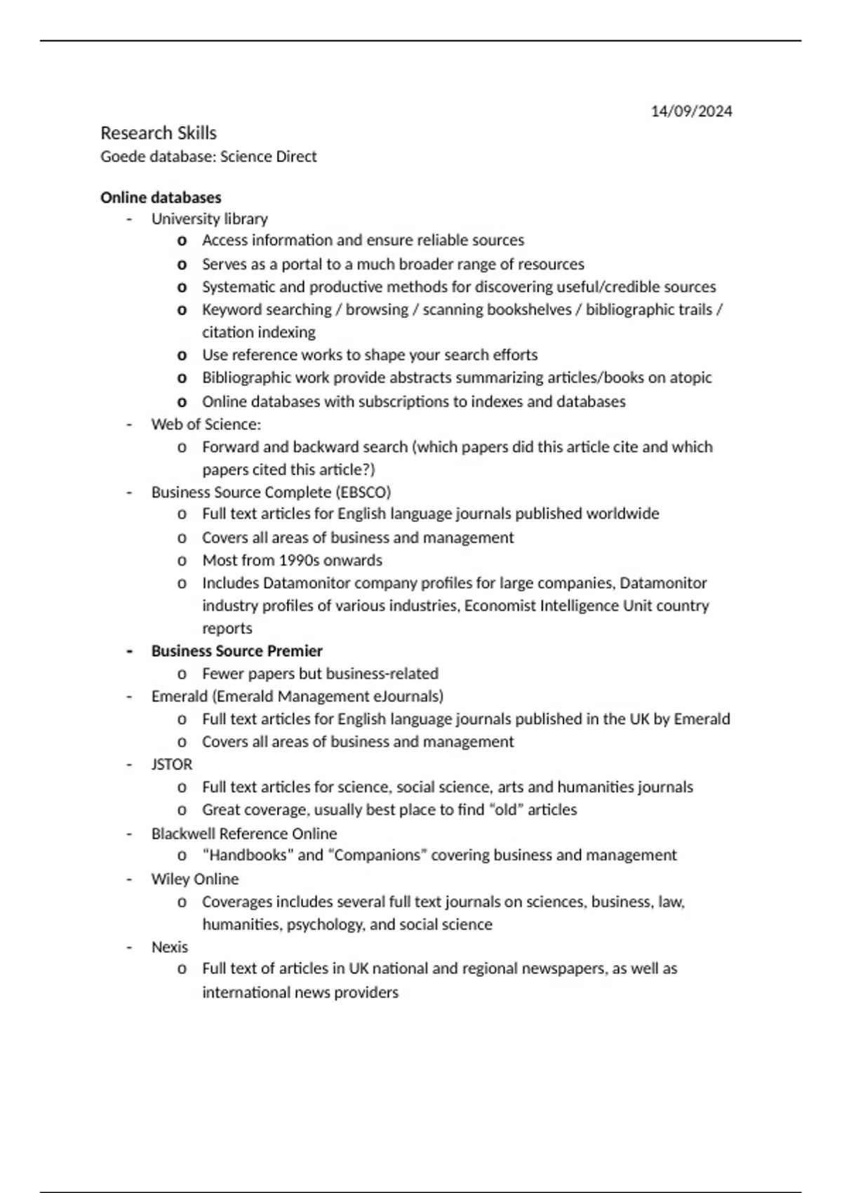 Grade: 8 Complete Summary – Research Skills Pre-MSc (EBS026A05) – University of Groningen (FEB) This document contains a clear and structured summary of all the essential theory, lectures, tutorial notes, videos, and key readings from the Research Skills Pre-MSc course (EBS026A05). Covers all exam material (week 1 – week 5) Includes lecture notes, tutorial insights, and Research Skills Reader highlights Written in easy-to-understand language with all important definitions, models, and examples If you’re taking the Research Skills Pre-MSc (EBS026A05) course at the FEB (RUG), this summary has everything you need to succeed.