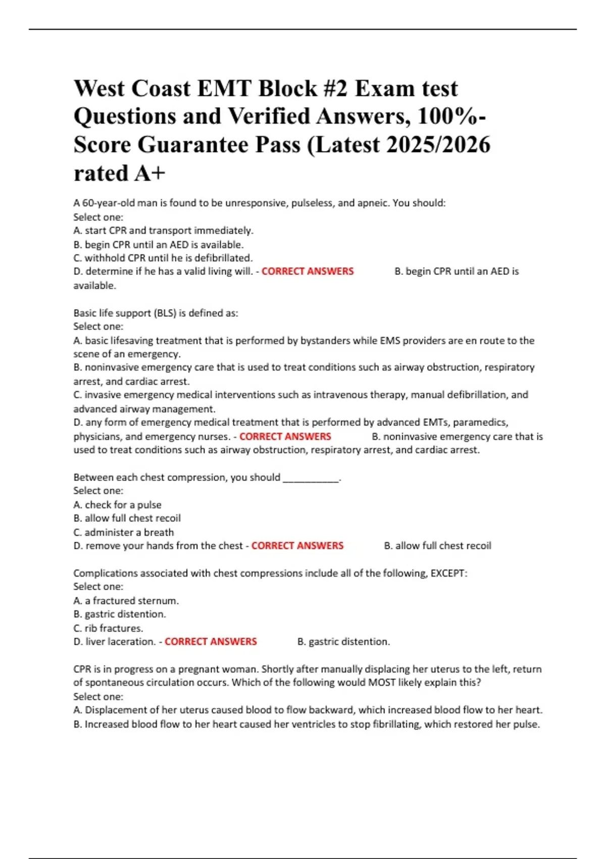 forces more blood from the ventricle during each compression. - CORRECT ANSWERS A. limiting
