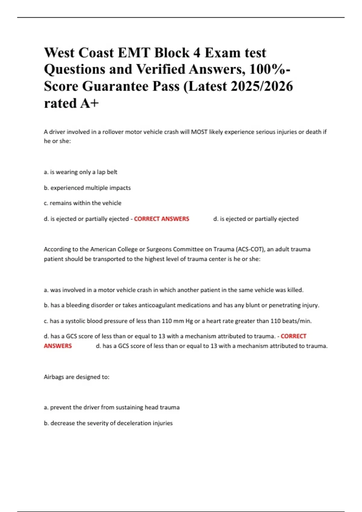 d. be used with or without a shoulder harness - CORRECT ANSWERS b. decrease the severity oof
