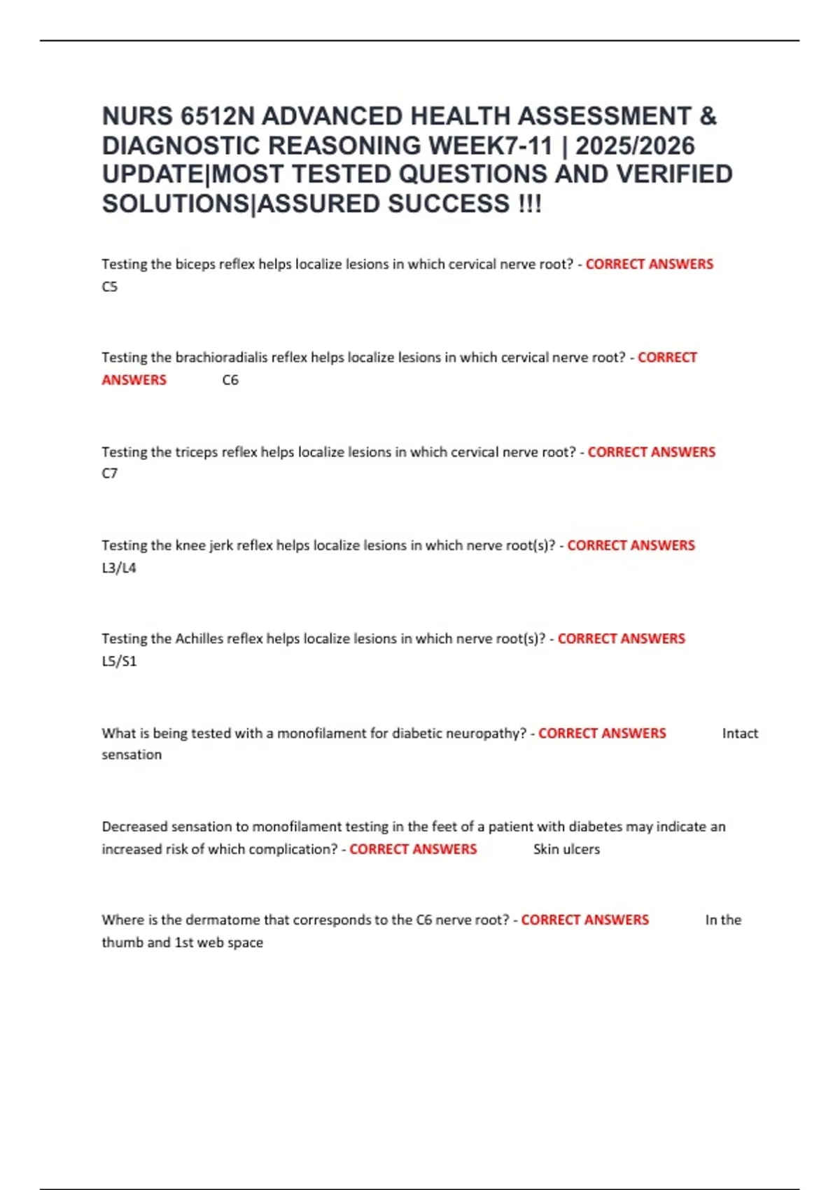 Testing the biceps reflex helps localize lesions in which cervical nerve root? - CORRECT ANSWERS