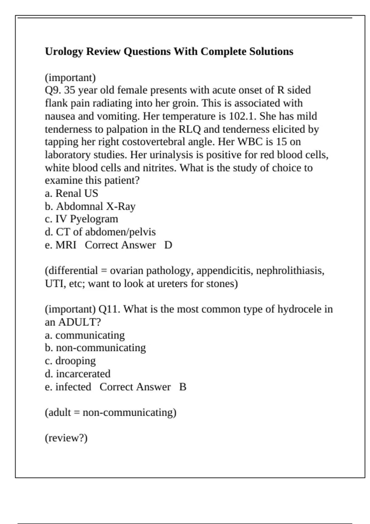 Urology Review Questions With Complete Solutions