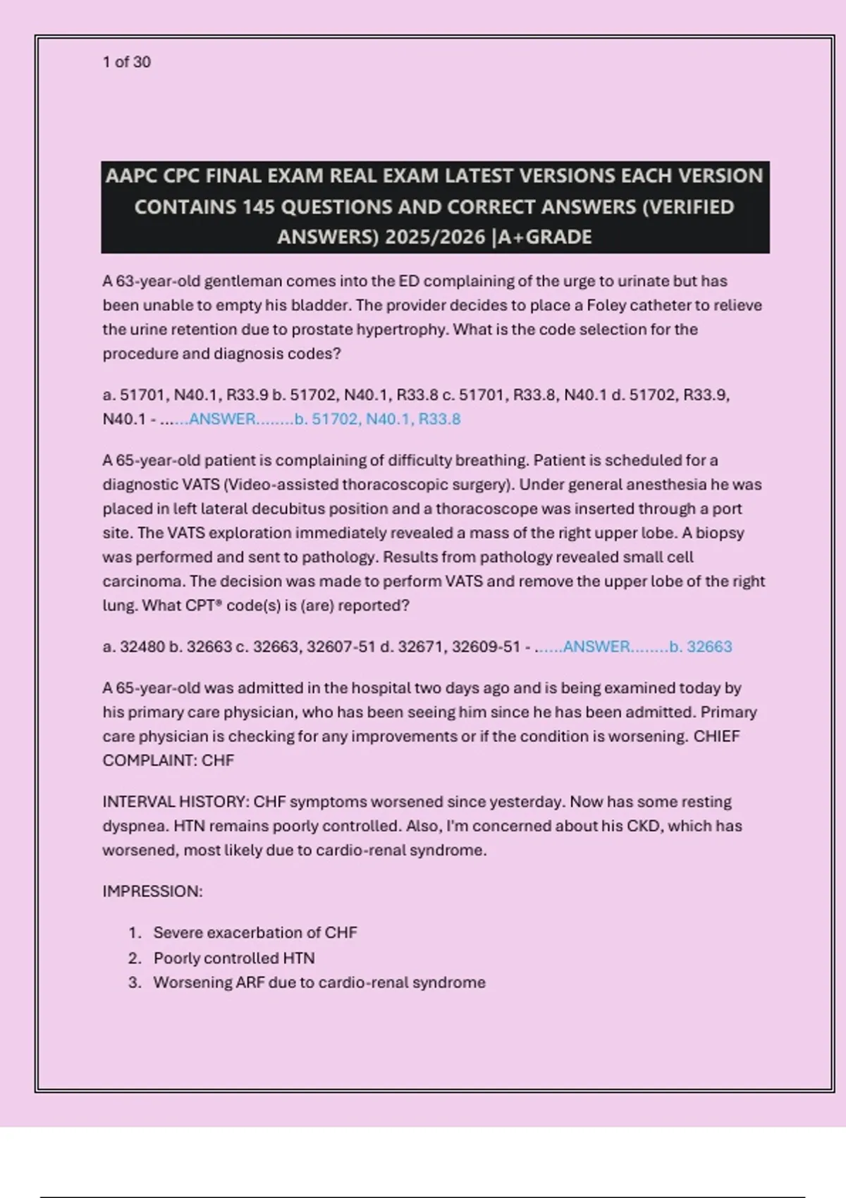 AAPC CPC FINAL EXAM REAL EXAM LATEST VERSIONS EACH VERSION