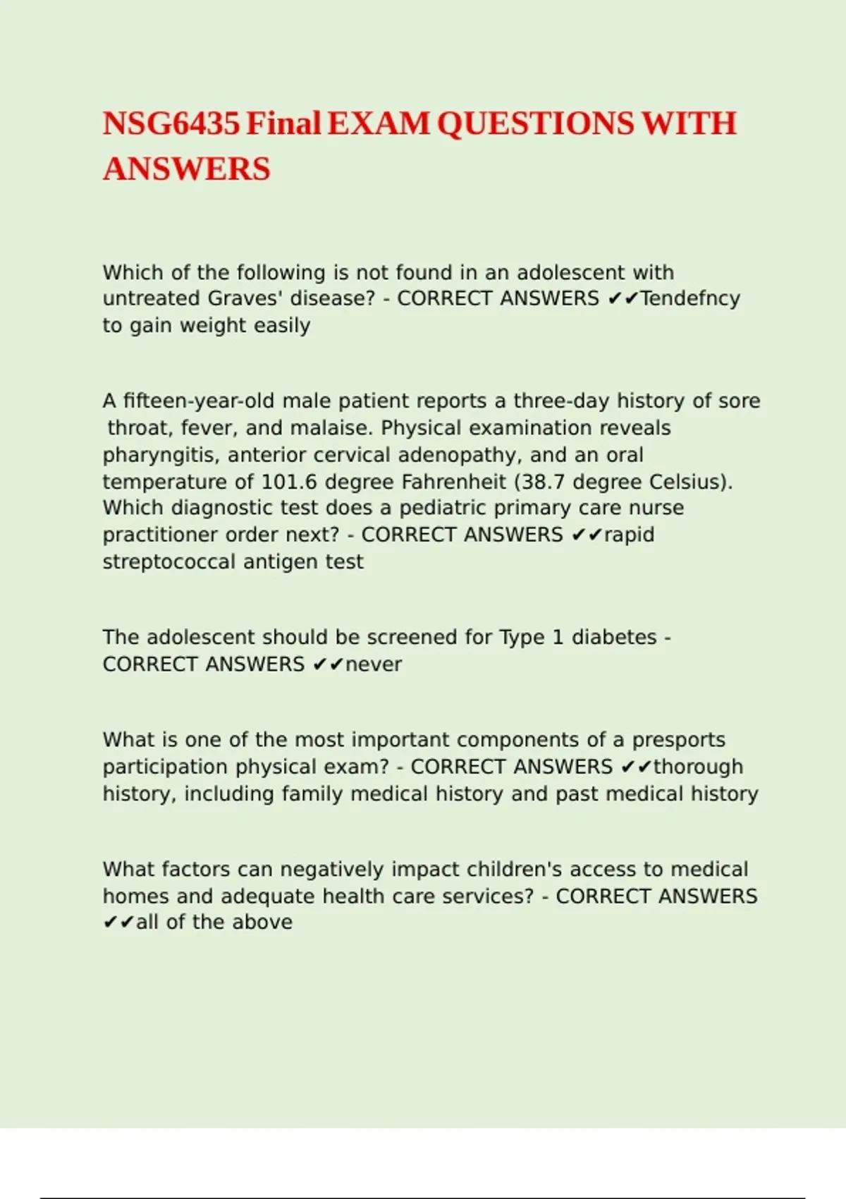 NSG6435 Final EXAM QUESTIONS WITH |\ |\ |\ |\ |\