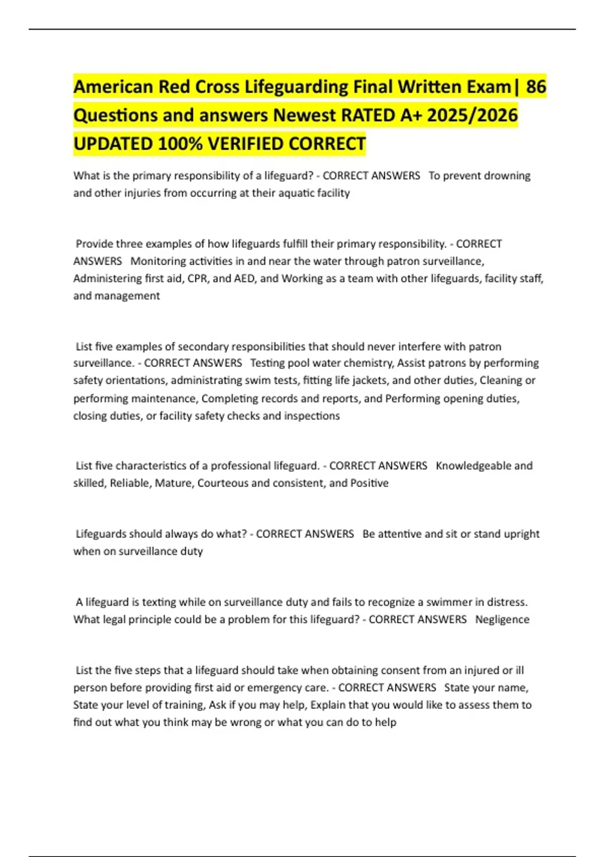 List five characteris$cs of a professional lifeguard. - CORRECT ANSWERS Knowledgeable and
