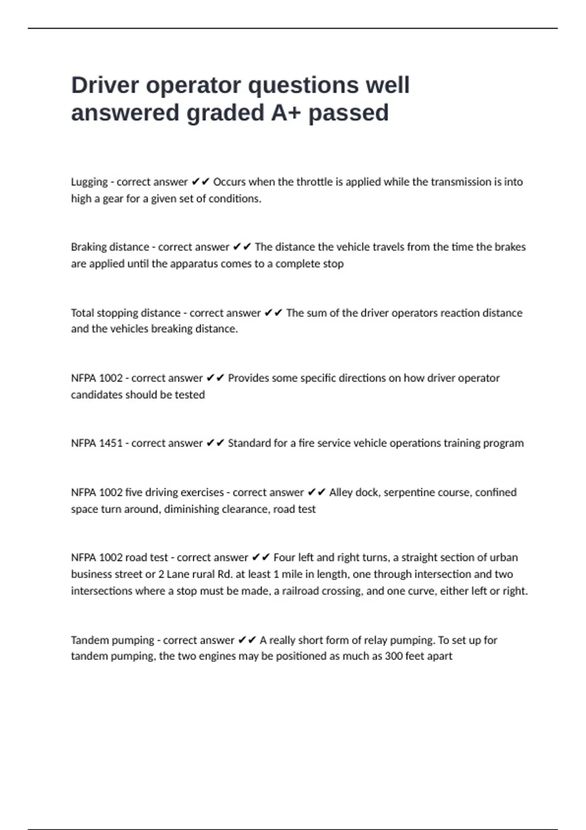 NFPA 1002 - correct answer ✔✔ Provides some specific directions on how driver operator