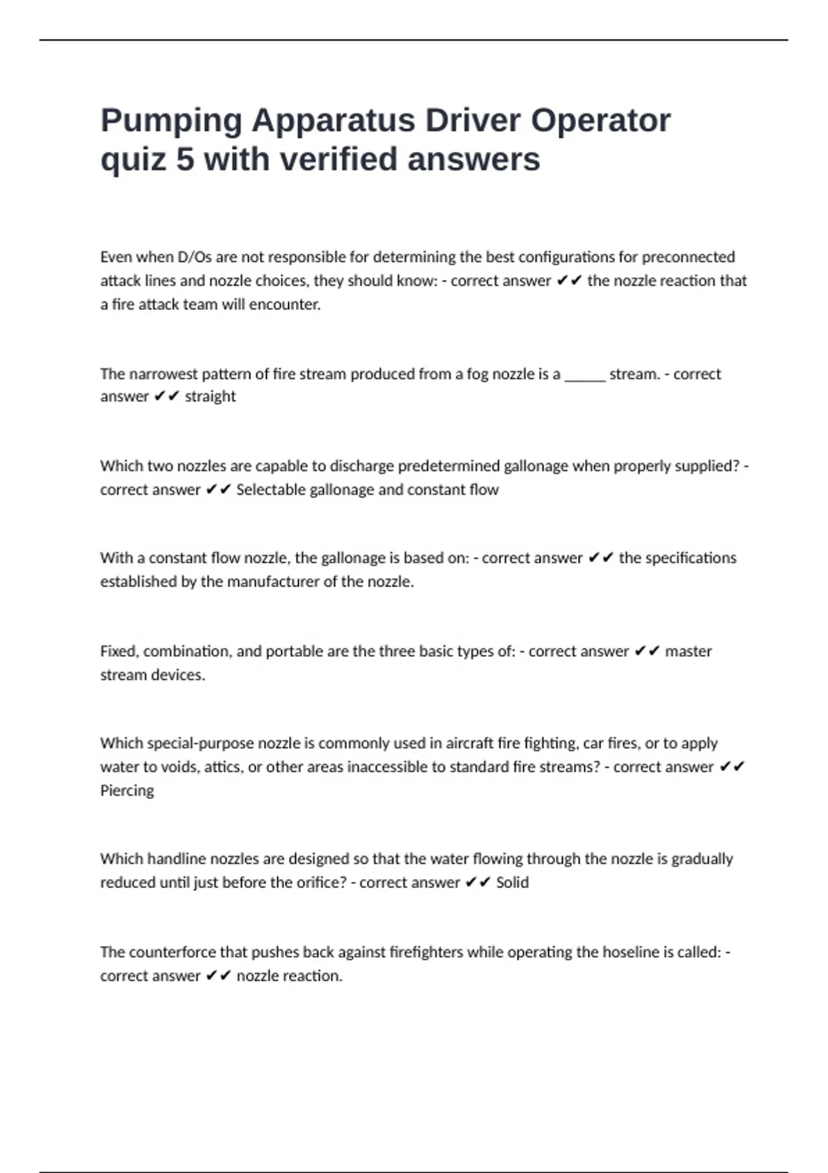 Pumping Apparatus Driver Operator quiz 5 with verified answers