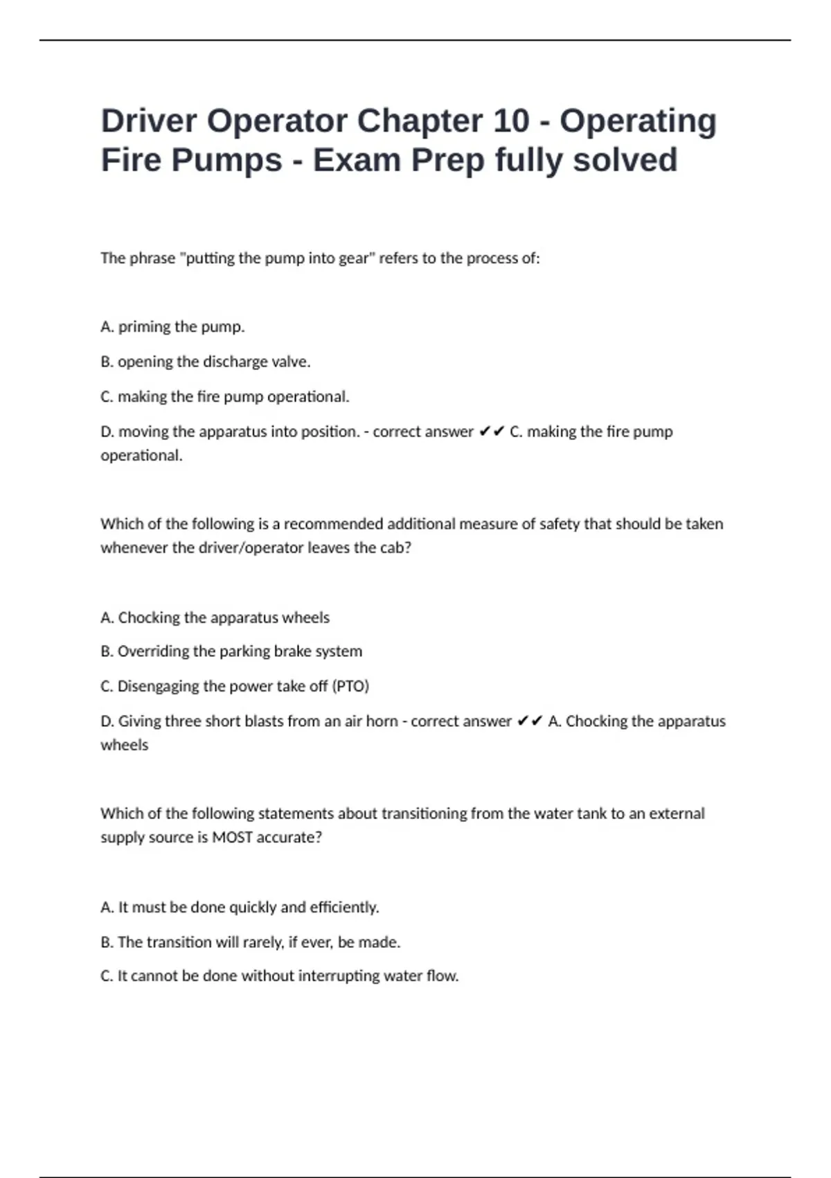 Driver Operator Chapter 10 - Operating Fire Pumps - Exam Prep fully solved