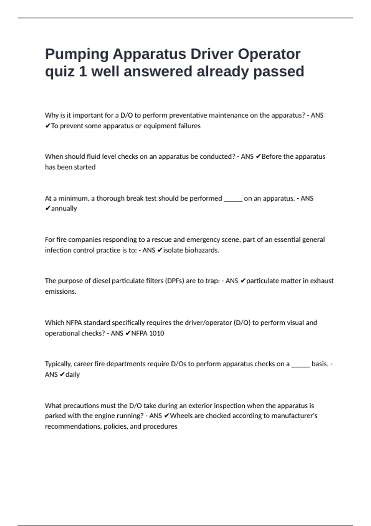 Pumping Apparatus Driver Operator quiz 1 well answered already passed